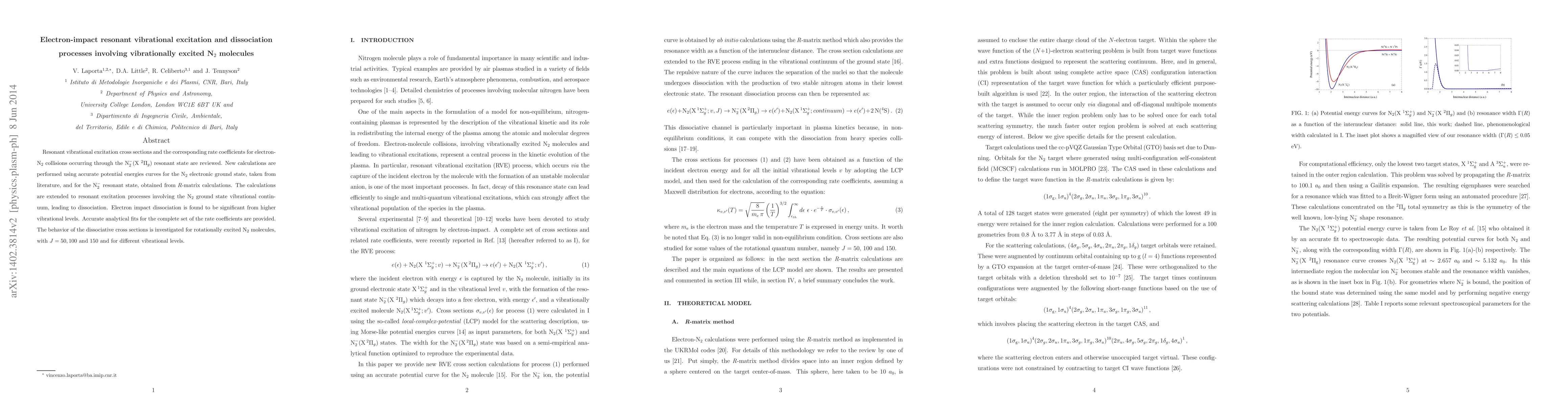 The paper presents new calculations and analytical fits for resonant vibrational excitation and dissociation processes, improving upon previous work by using accurate potential energy curves and extending to vibrational continuum dissociation.
