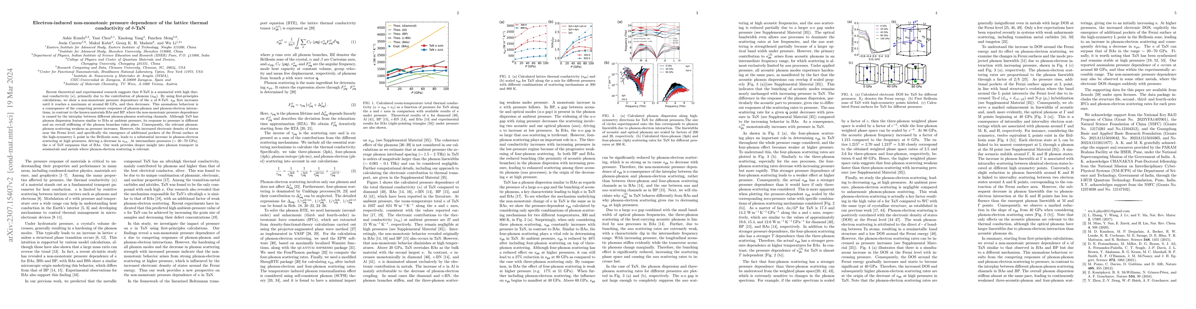 This research investigates the lattice thermal conductivity ($\kappa$) of $\theta$-TaN under pressure, revealing a non-monotonic dependence driven by competing phonon-phonon and phonon-electron interactions. At intermediate pressures, $\theta$-TaN's $\kappa$ exceeds that of known materials, highlighting the unique role of electronic density of states in influencing thermal conductivity.