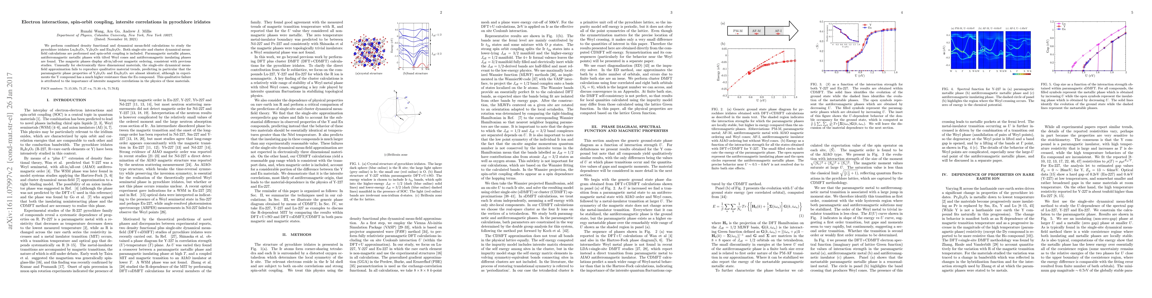 This study combines density functional and dynamical mean-field calculations to explore pyrochlore iridates, revealing paramagnetic, antiferromagnetic metallic, and insulating phases, with intersite correlations playing a critical role in explaining discrepancies between theoretical predictions and experimental observations.
