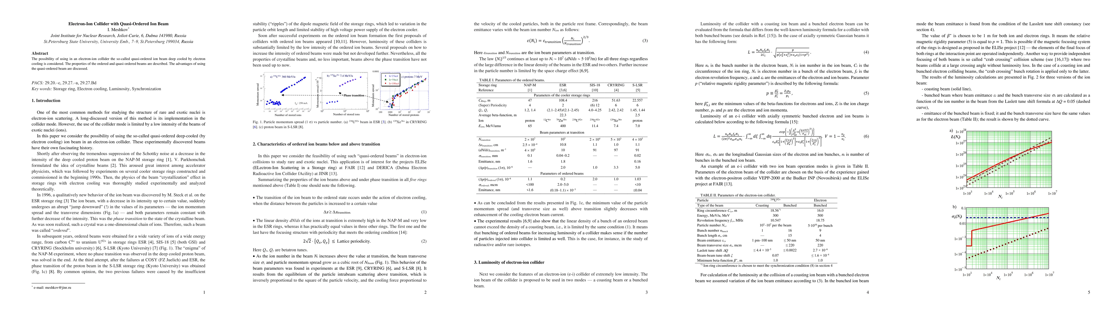 This paper explores the potential of employing a quasi-ordered, deeply cooled ion beam in an electron-ion collider, detailing its properties and highlighting the advantages it offers over traditional ion beams. The study underscores the benefits of enhanced beam quality and precision in collider experiments.