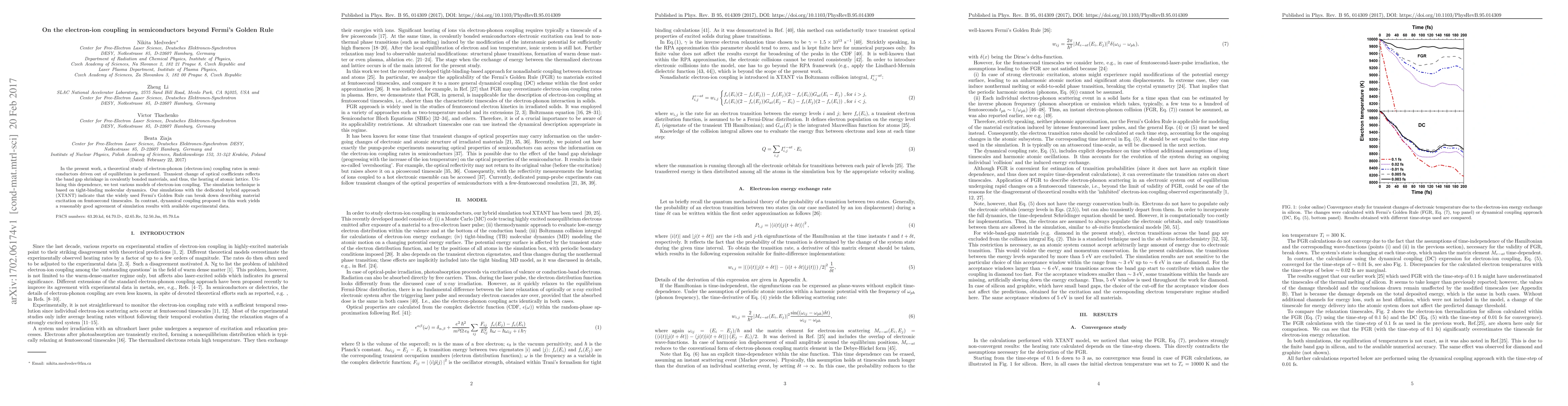 This paper investigates electron-phonon coupling in semiconductors using tight-binding molecular dynamics simulations, finding that Fermi's golden rule fails to describe excitations on femtosecond timescales. The proposed dynamical coupling model better aligns with experimental data.