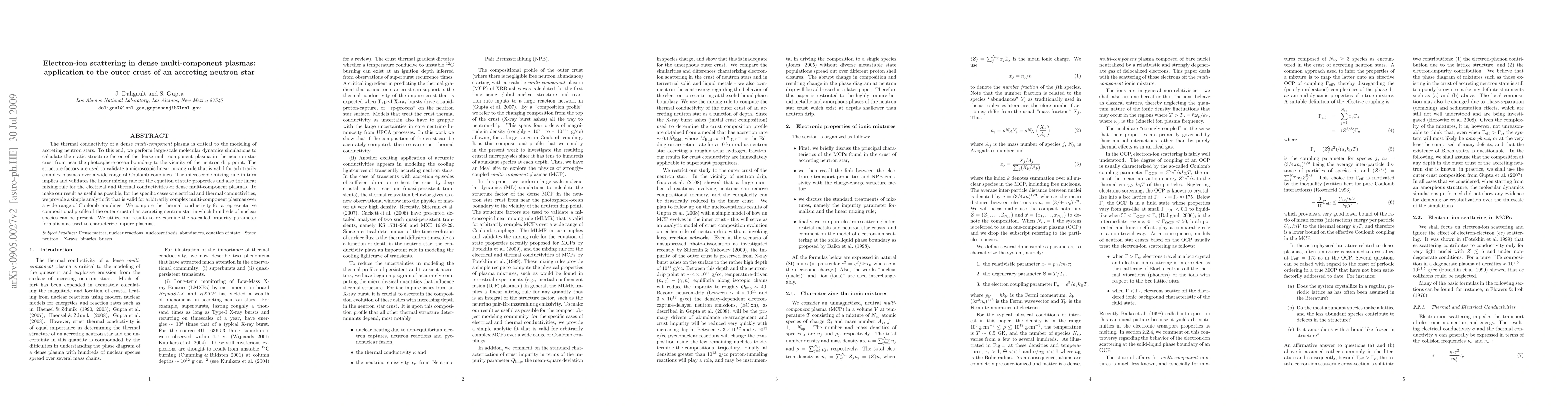 The thermal conductivity of a dense {\it multi-component} plasma is critical to the modeling of accreting neutron stars. To this end, we perform large-scale molecular dynamics simulations to calculate the static structure factor of the dense multi-component plasma in the neutron star crust from near the photosphere-ocean boundary to the vicinity of the neutron drip point. The structure factors are used to validate a microscopic linear mixing rule that is valid for arbitrarily complex plasmas over a wide range of Coulomb couplings. The microscopic mixing rule in turn implies and validates the linear mixing rule for the equation of state properties and also the linear mixing rule for the electrical and thermal conductivities of dense multi-component plasmas. To make our result as useful as possible, for the specific cases of electrical and thermal conductivities, we provide a simple analytic fit that is valid for arbitrarily complex multi-component plasmas over a wide range of Coulomb couplings. We compute the thermal conductivity for a representative compositional profile of the outer crust of an accreting neutron star in which hundreds of nuclear species can be present. We utilize our results to re-examine the so-called impurity parameter formalism as used to characterize impure plasmas.
