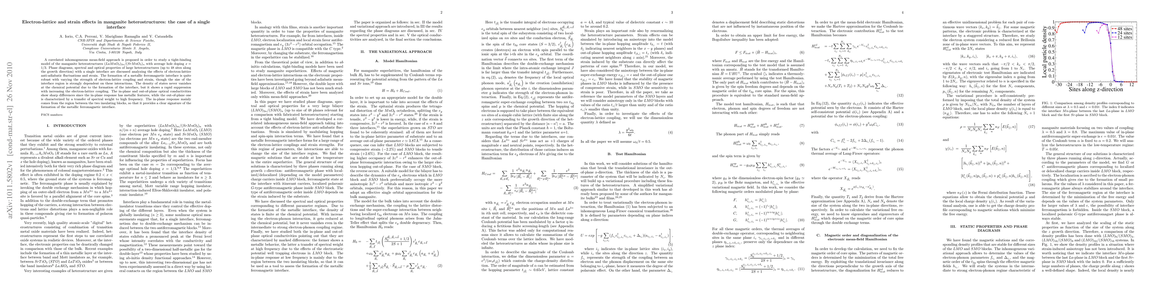 A correlated inhomogeneous mean-field approach is proposed in order to study a tight-binding model of the manganite heterostructures (LaMnO3)2n/(SrMnO3)n with average hole doping x = 1/3. Phase diagrams, spectral and optical properties of large heterostructures (up to 48 sites along the growth direction) with a single interface are discussed analyzing the effects of electron-lattice anti-adiabatic fluctuations and strain. The formation of a metallic ferromagnetic interface is quite robust with varying the strength of electron-lattice coupling and strain, though the size of the interface region is strongly dependent on these interactions. The density of states never vanishes at the chemical potential due to the formation of the interface, but it shows a rapid suppression with increasing the electron-lattice coupling. The in-plane and out-of-plane optical conductivities show sharp differences since the in-plane response has metallic features, while the out-of-plane one is characterized by a transfer of spectral weight to high frequency. The in-plane response mainly comes from the region between the two insulating blocks, so that it provides a clear signature of the formation of the metallic ferromagnetic interface.