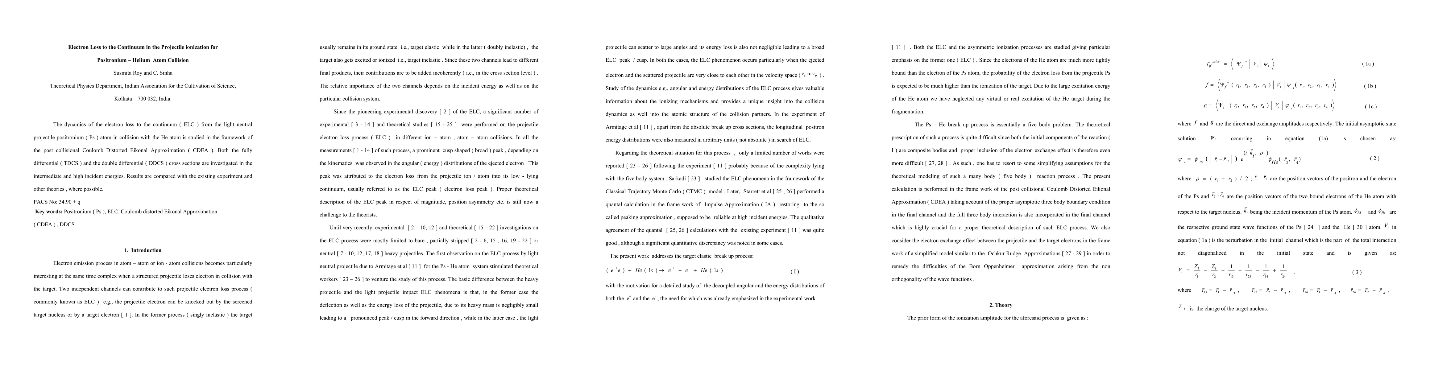 The dynamics of the electron loss to the continuum (ELC) from the light neutral projectile positronium (Ps) atom in collision with the He atom is studied in the framework of the post collisional Coulomb Distorted Eikonal Approximation (CDEA). Both the fully differential (TDCS) and the double differential (DDCS) cross sections are investigated in the intermediate and high incident energies. Results are compared with the existing experiment and other theories, where possible.