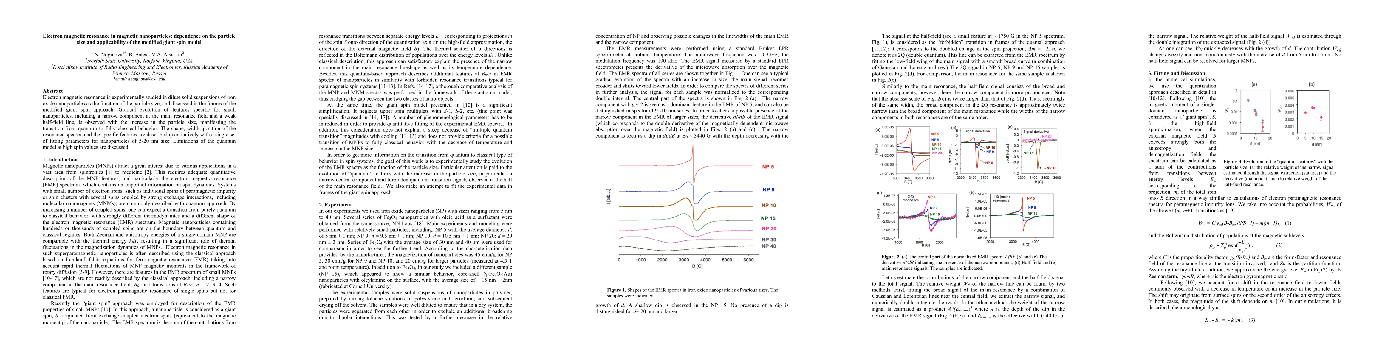 This paper investigates the electron magnetic resonance in superparamagnetic iron oxide nanoparticles, exploring how particle size influences their magnetic behavior. The study compares experimental data with simulations using a modified giant spin model to understand the transition from quantum to classical magnetization dynamics.