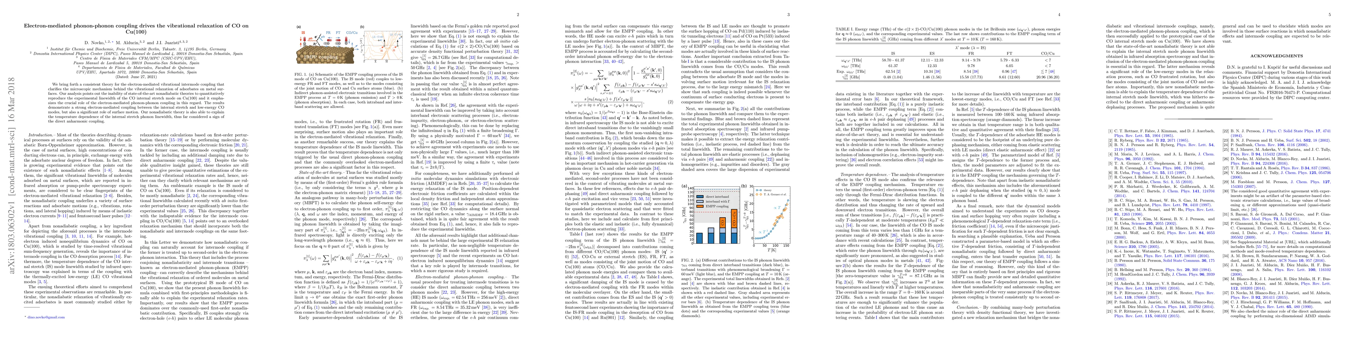 This research paper presents a new theory explaining how electrons play a crucial role in the vibrational relaxation of CO on Cu(100), improving existing nonadiabatic theories' ability to accurately predict experimental results.