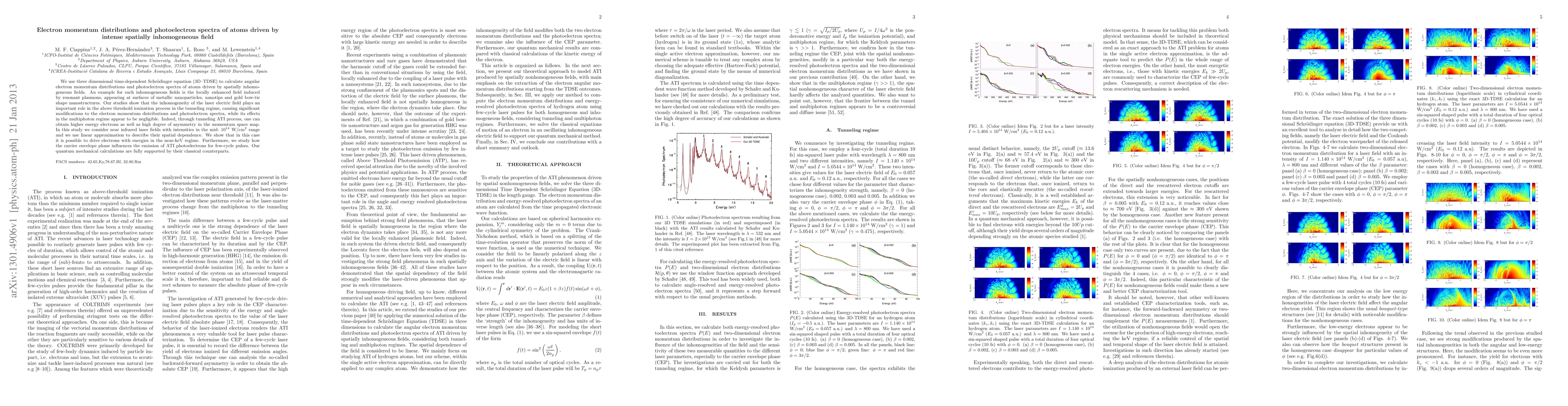 This paper investigates the impact of spatially inhomogeneous laser fields, such as those induced by plasmons near metallic nanoparticles, on electron momentum distributions and photoelectron spectra using 3D-TDSE. The study finds significant modifications in tunneling ionization processes, leading to higher energy electrons and asymmetric momentum distributions, while effects in the multiphoton regime are minimal.