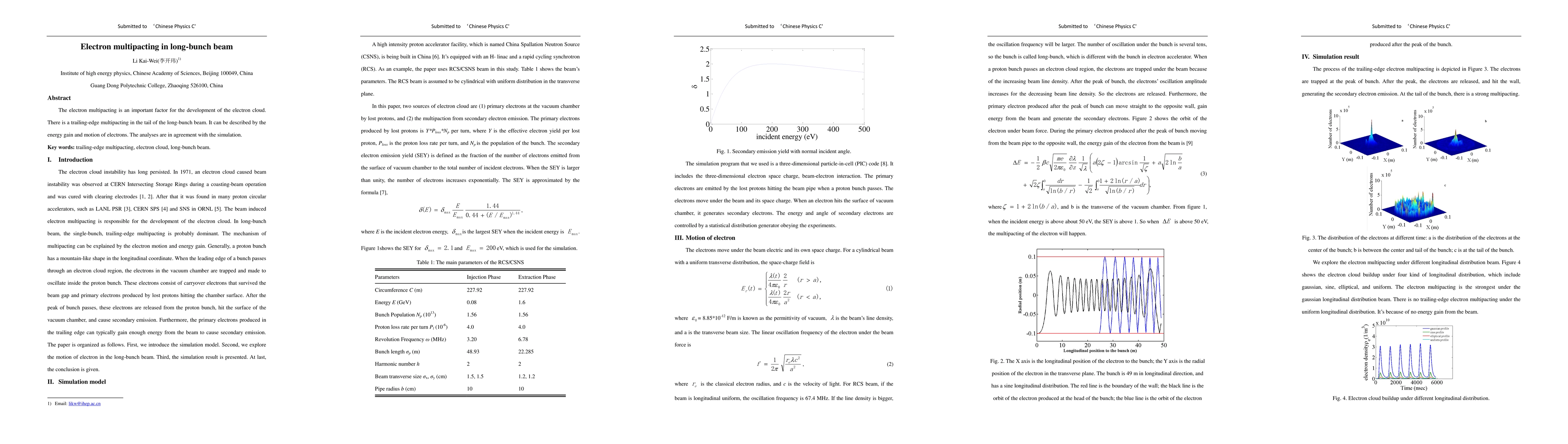 The electron multipacting is an important factor for the development of the electron cloud. There is a trailing-edge multipacting in the tail of the long-bunch beam. It can be described by the energy gain and motion of electrons. The analyses are in agreement with the simulation.