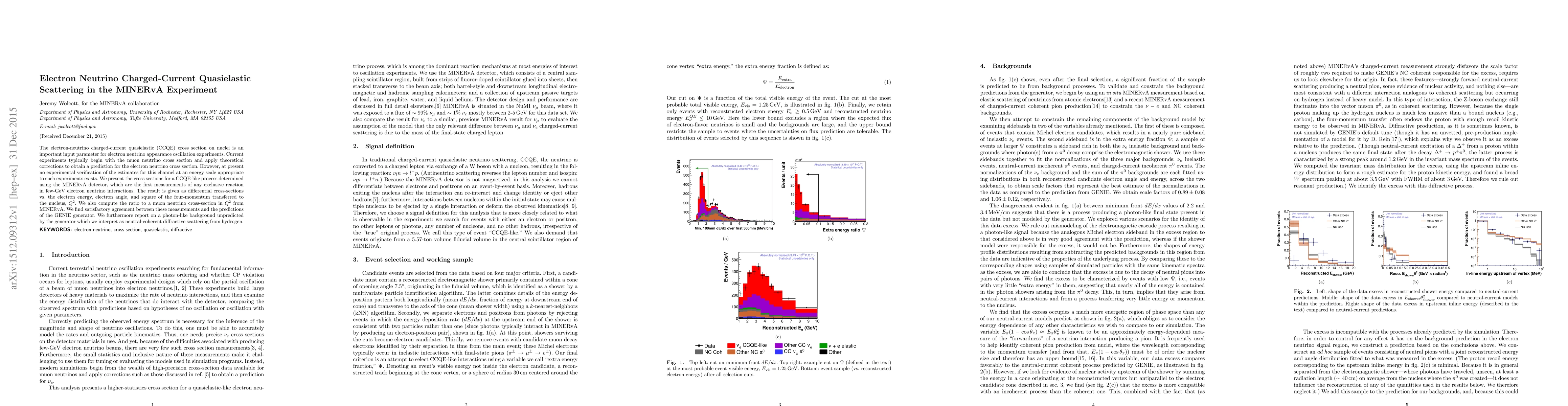The MINERvA experiment reports the first measurements of electron neutrino charged-current quasielastic scattering cross sections, providing crucial data for neutrino oscillation experiments. The results show agreement with theoretical predictions but also identify an unexpected photon-like background likely due to neutral-coherent diffractive scattering.