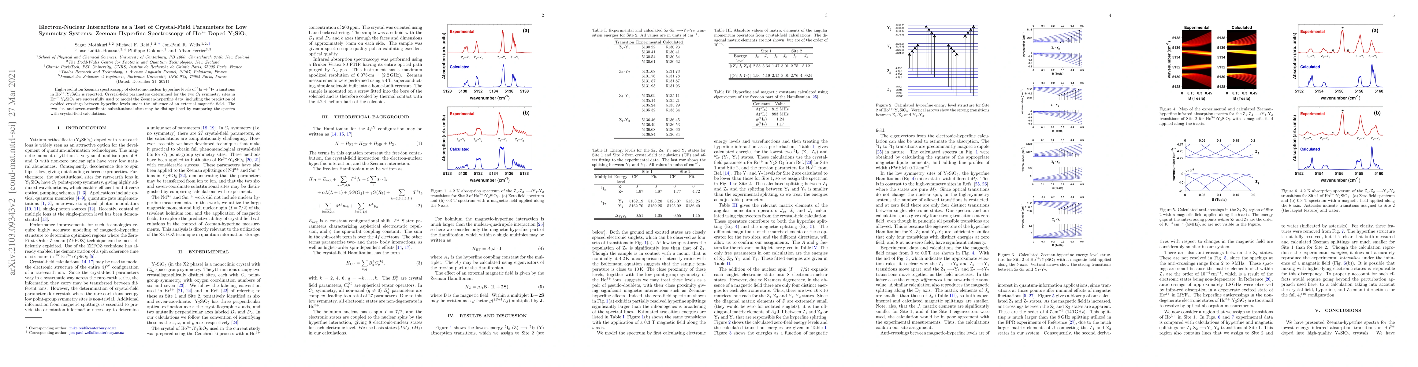 This paper reports high-resolution Zeeman spectroscopy of Ho$^{3+}$ in Y$_2$SiO$_5$, using crystal-field parameters from Er$^{3+}$ to model hyperfine interactions, and successfully predicts avoided crossings in the spectra, distinguishing two low symmetry sites.