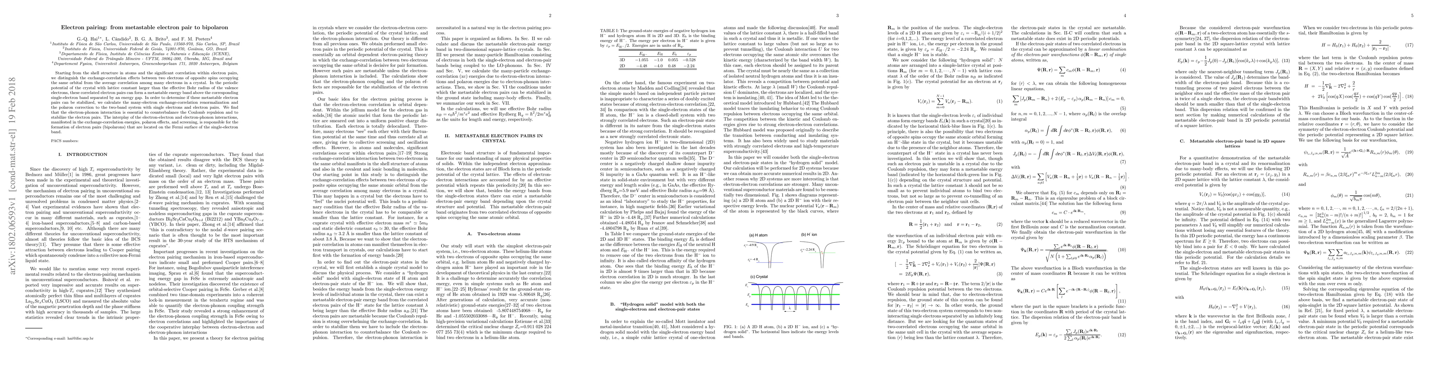 Starting from the shell structure in atoms and the significant correlation within electron pairs, we distinguish the exchange-correlation effects between two electrons of opposite spins occupying the same orbital from the average correlation among many electrons in a crystal. In the periodic potential of the crystal with lattice constant larger than the effective Bohr radius of the valence electrons, these correlated electron pairs can form a metastable energy band above the corresponding single-electron band separated by an energy gap. In order to determine if these metastable electron pairs can be stabilized, we calculate the many-electron exchange-correlation renormalization and the polaron correction to the two-band system with single electrons and electron pairs. We find that the electron-phonon interaction is essential to counterbalance the Coulomb repulsion and to stabilize the electron pairs. The interplay of the electron-electron and electron-phonon interactions, manifested in the exchange-correlation energies, polaron effects, and screening, is responsible for the formation of electron pairs (bipolarons) that are located on the Fermi surface of the single-electron band.