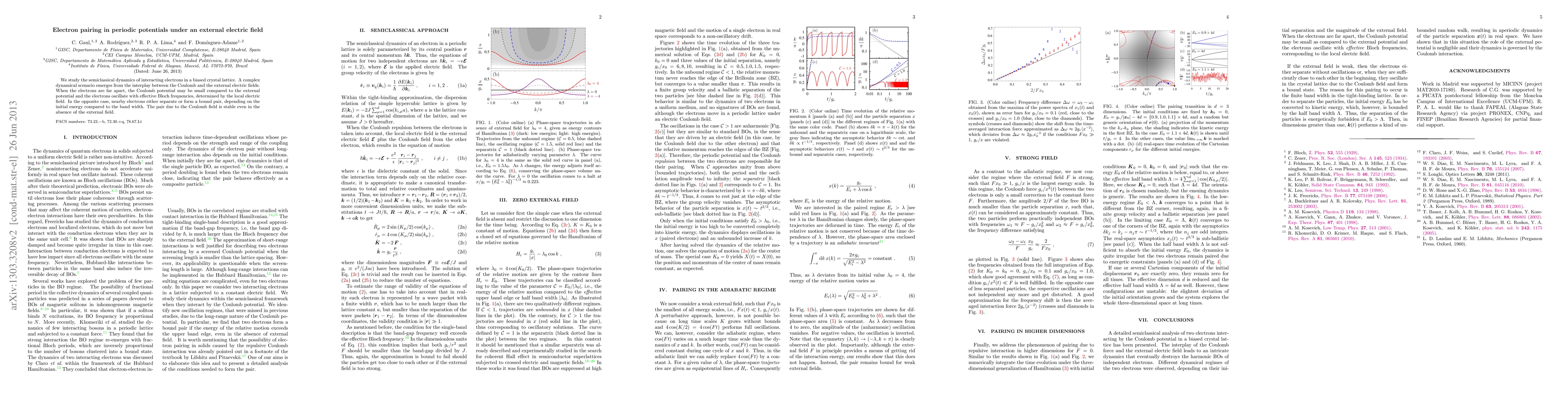 This paper investigates the semiclassical dynamics of interacting electrons in a biased crystal lattice, revealing complex behavior from the interplay between Coulomb and external electric fields. Electrons oscillate with effective Bloch frequencies when distant, while nearby electrons may form stable Coulomb pairs regardless of the external field.