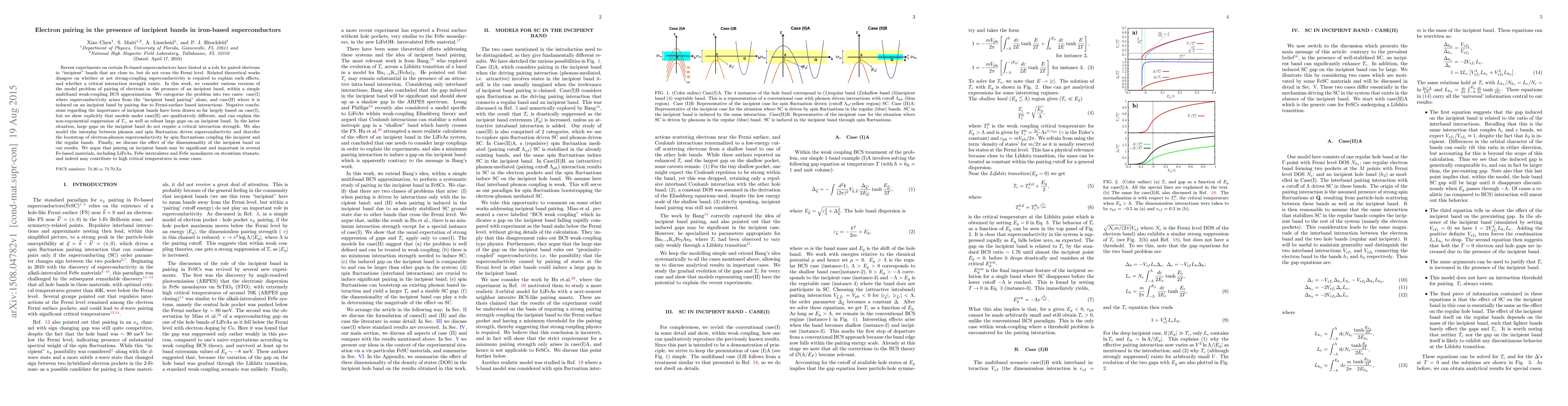 Recent experiments on certain Fe-based superconductors have hinted at a role for paired electrons in "incipient" bands that are close to, but do not cross the Fermi level. Related theoretical works disagree on whether or not strong-coupling superconductivity is required to explain such effects, and whether a critical interaction strength exists. In this work, we consider various versions of the model problem of pairing of electrons in the presence of an incipient band, within a simple multiband weak-coupling BCS approximation. We categorize the problem into two cases: case(I) where superconductivity arises from the "incipient band pairing" alone, and case(II) where it is induced on an incipient band by pairing due to Fermi-surface based interactions. Negative conclusions regarding the importance of incipient bands have been drawn so far largely based on case(I), but we show explicitly that models under case(II) are qualitatively different, and can explain the non-exponential suppression of Tc, as well as robust large gaps on an incipient band. In the latter situation, large gaps on the incipient band do not require a critical interaction strength. We also model the interplay between phonon and spin fluctuation driven superconductivity and describe the bootstrap of electron-phonon superconductivity by spin fluctuations coupling the incipient and the regular bands. Finally, we discuss the effect of the dimensionality of the incipient band on our results. We argue that pairing on incipient bands may be significant and important in several Fe-based materials, including LiFeAs, FeSe intercalates and FeSe monolayers on strontium titanate, and indeed may contribute to high critical temperatures in some cases.