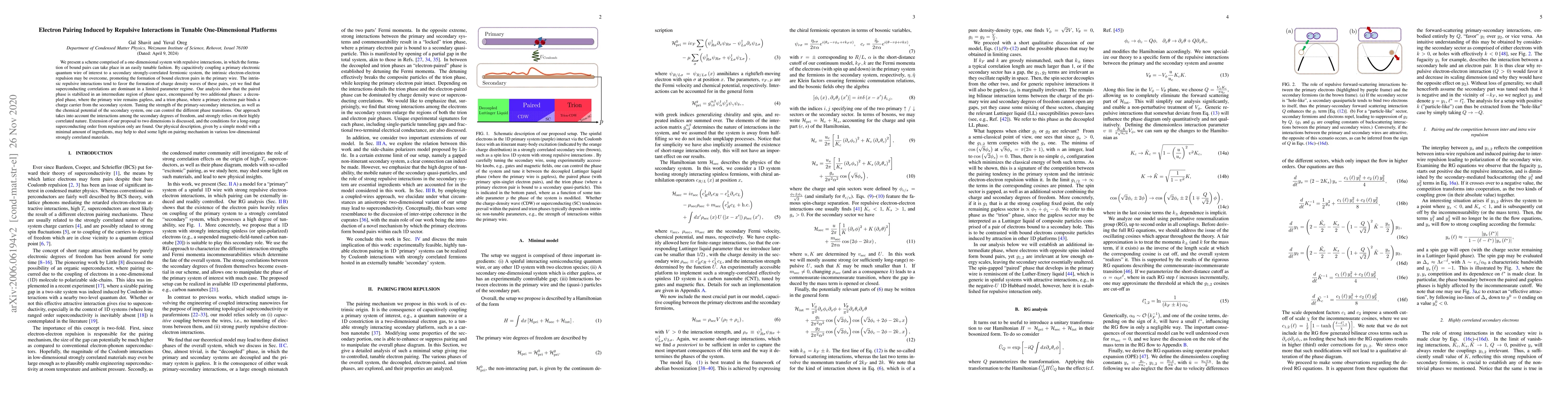 This research proposes a tunable one-dimensional system where repulsive interactions enable electron pairing through capacitive coupling to a secondary strongly-correlated fermionic system, leading to a superconducting phase in an intermediate parameter regime. The study explores phase transitions controlled by interaction strength and chemical potential, and suggests potential extensions to two-dimensional systems.