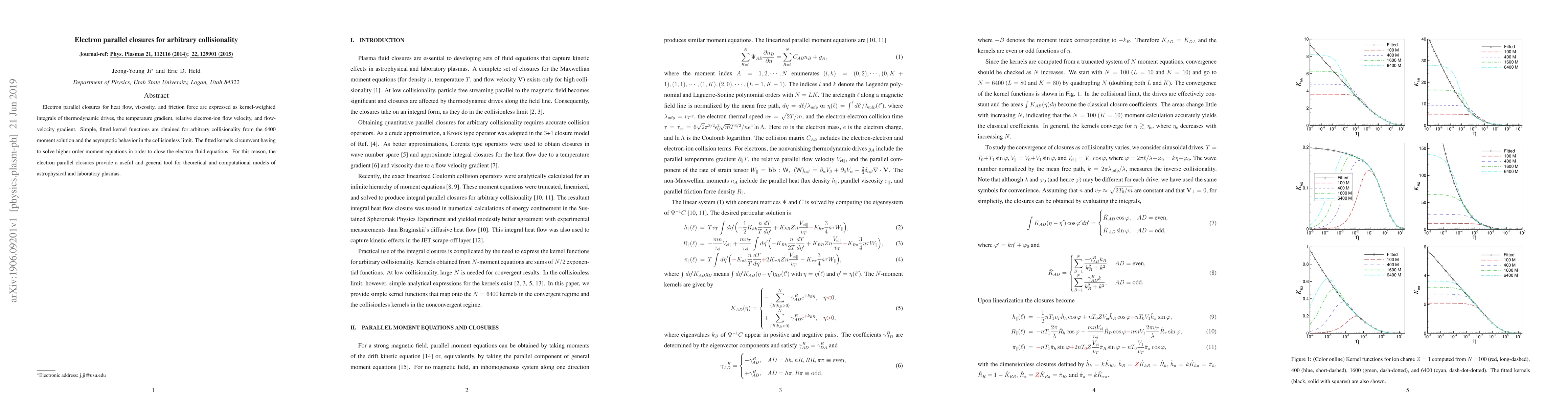 This paper presents fitted kernel functions for electron parallel closures of heat flow, viscosity, and friction force, derived from a 6400 moment solution and asymptotic collisionless behavior. These closures simplify the closure of electron fluid equations for various collisionality regimes, offering a practical tool for astrophysical and laboratory plasma simulations.