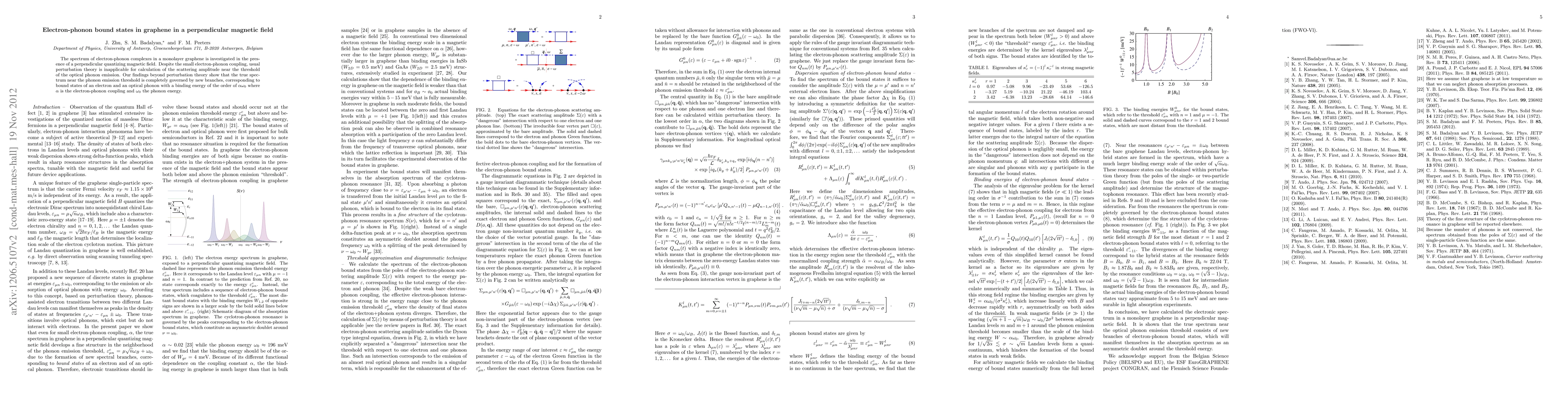 This paper investigates electron-phonon interactions in graphene under a perpendicular magnetic field, revealing that beyond perturbation theory, new bound states emerge near the optical phonon emission threshold, characterized by a binding energy proportional to the electron-phonon coupling and phonon energy.