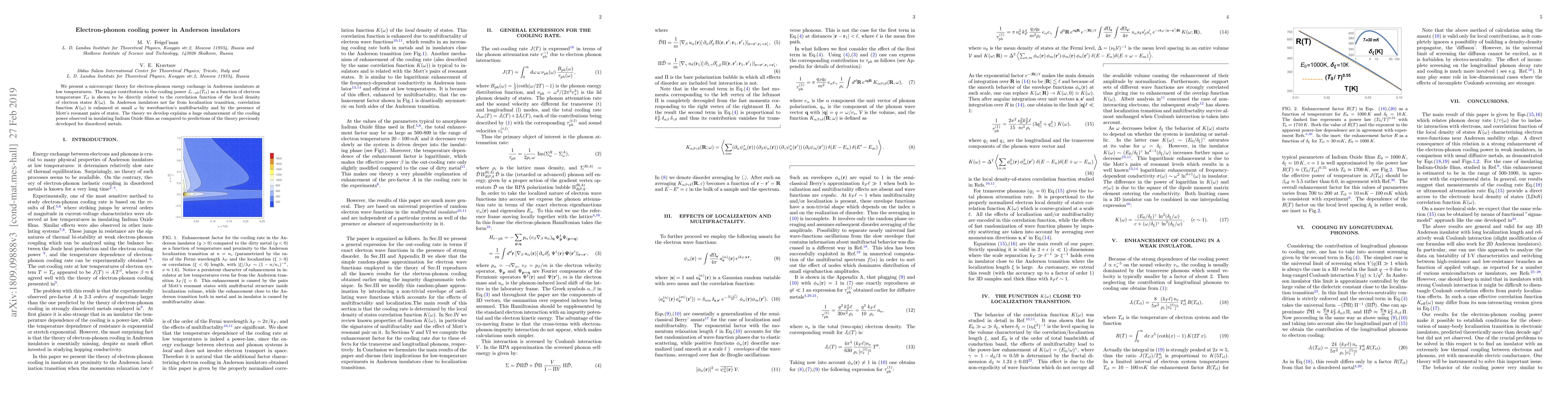 This paper develops a microscopic theory for electron-phonon energy exchange in Anderson insulators, showing that cooling power is strongly influenced by the correlation function of local density of electron states, especially in insulators close to the localization transition. It explains the enhanced cooling power in insulating Indium Oxide films and suggests new conditions for observing Many Body Localization transition in electronic insulators.