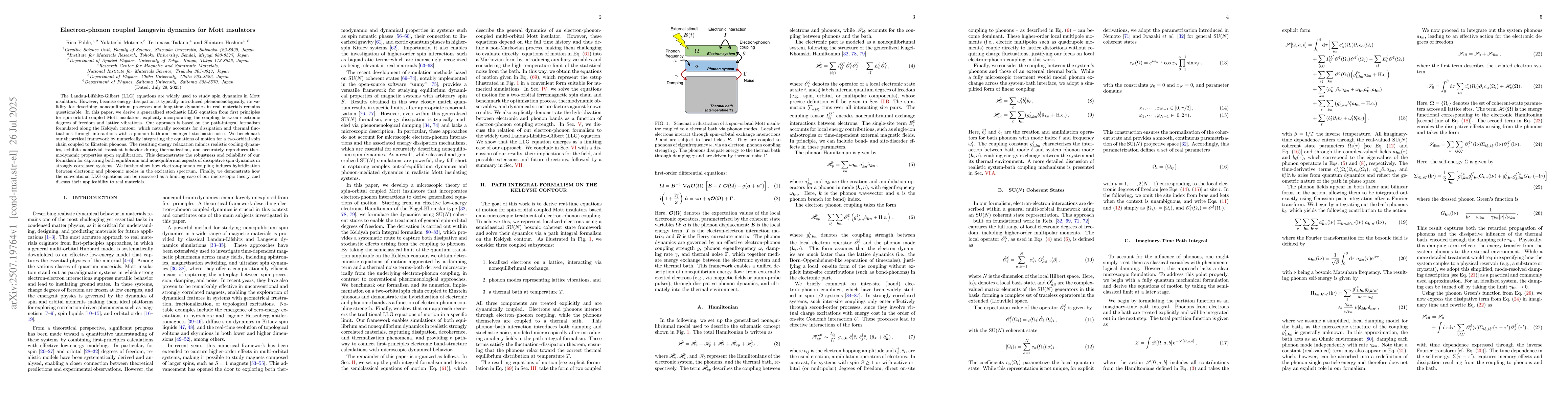 The Landau-Lifshitz-Gilbert (LLG) equations are widely used to study spin dynamics in Mott insulators. However, because energy dissipation is typically introduced phenomenologically, its validity for describing nonequilibrium processes and long-time dynamics in real materials remains questionable. In this paper, we derive a generalized stochastic LLG equation from first principles for spin-orbital coupled Mott insulators, explicitly incorporating the coupling between electronic degrees of freedom and lattice vibrations. Our approach is based on the path-integral formalism formulated along the Keldysh contour, which naturally accounts for dissipation and thermal fluctuations through interactions with a phonon bath and emergent stochastic noise. We benchmark our theoretical framework by numerically integrating the equations of motion for a two-orbital spin chain coupled to Einstein phonons. The resulting energy relaxation mimics realistic cooling dynamics, exhibits nontrivial transient behavior during thermalization, and accurately reproduces thermodynamic properties upon equilibration. This demonstrates the robustness and reliability of our formalism for capturing both equilibrium and nonequilibrium aspects of dissipative spin dynamics in strongly correlated systems. We further show how electron-phonon coupling induces hybridization between electronic and phononic modes in the excitation spectrum. Finally, we demonstrate how the conventional LLG equations can be recovered as a limiting case of our microscopic theory, and discuss their applicability to real materials.