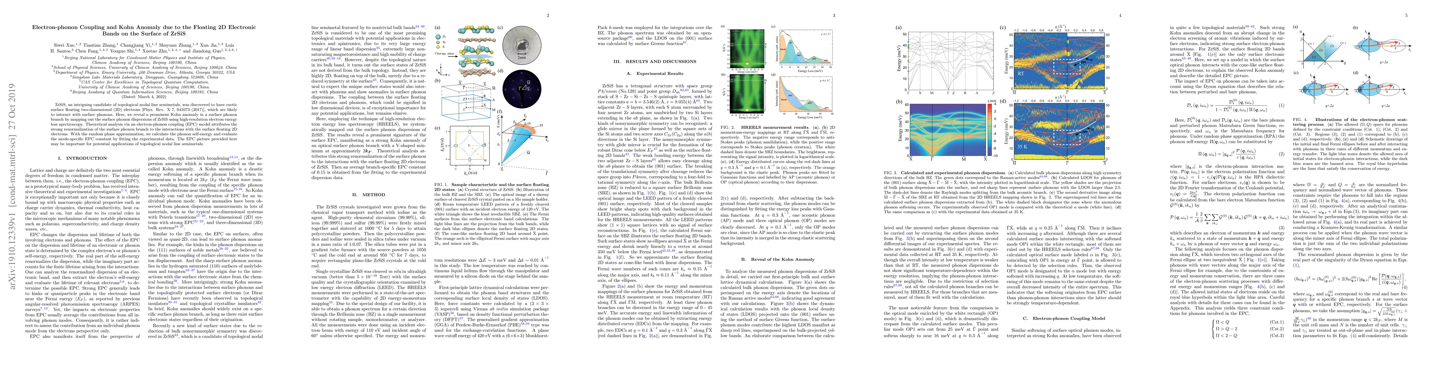 This paper investigates the interaction between floating 2D electronic bands on the surface of ZrSiS and surface phonons, revealing a significant Kohn anomaly in a phonon branch via high-resolution electron energy loss spectroscopy. The electron-phonon coupling model explains the strong phonon renormalization due to the 2D electrons, with implications for the applications of topological nodal line semimetals.