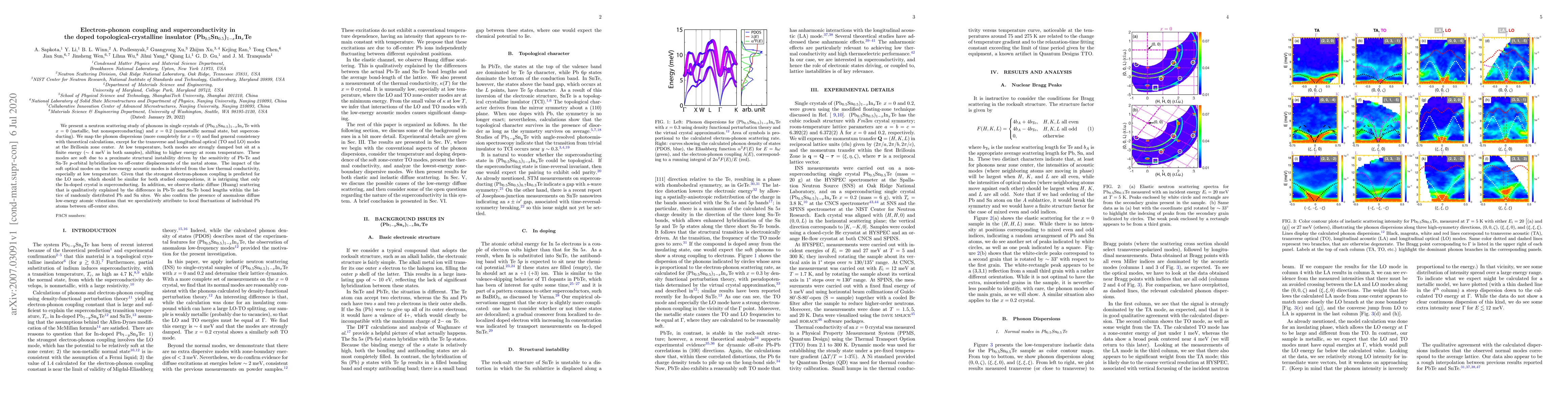 This research explores phonon behavior in doped topological-crystalline insulators (Pb$_{0.5}$Sn$_{0.5}$)$_{1-x}$In$_x$Te using neutron scattering, finding that soft optical phonon modes persist in both metallic and superconducting samples, hinting at a structural instability linked to Pb-Te and Sn-Te orbital hybridization. Despite strong electron-phonon coupling predicted for the LO mode, only the In-doped, superconducting sample exhibits superconductivity, suggesting additional factors beyond phonons are at play.