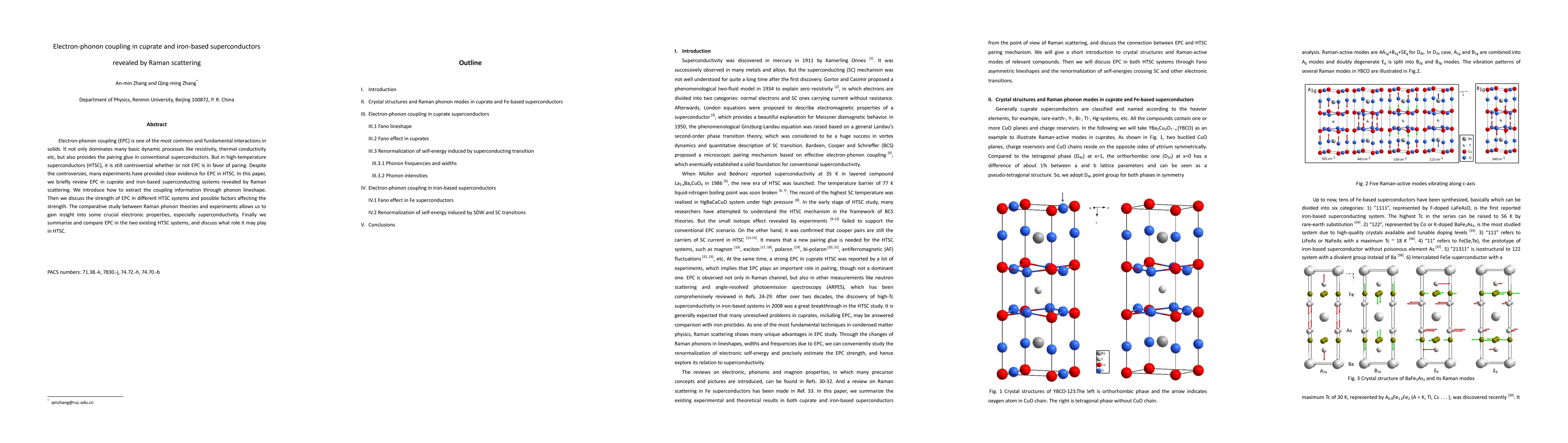 This paper reviews electron-phonon coupling (EPC) in cuprate and iron-based high-temperature superconductors using Raman scattering, discussing its role in superconductivity and comparing the coupling strength across different systems. The study highlights the importance of EPC in understanding the fundamental properties of these superconductors.