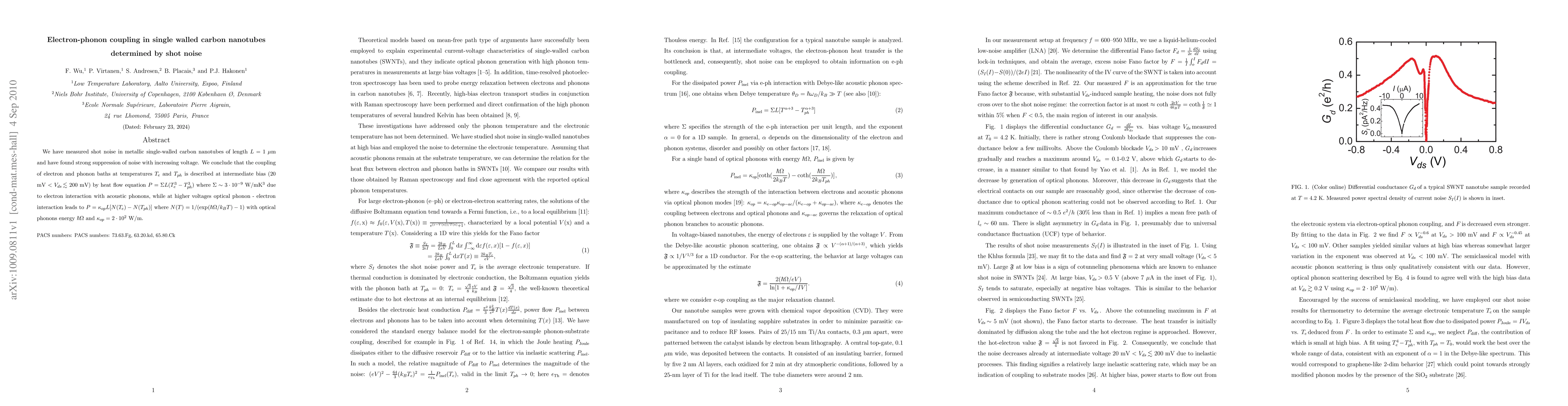 This research measures shot noise in metallic single-walled carbon nanotubes, finding significant noise suppression with increasing voltage. It identifies electron-phonon coupling at intermediate biases described by a heat flow equation, transitioning to optical phonon interaction at higher voltages.