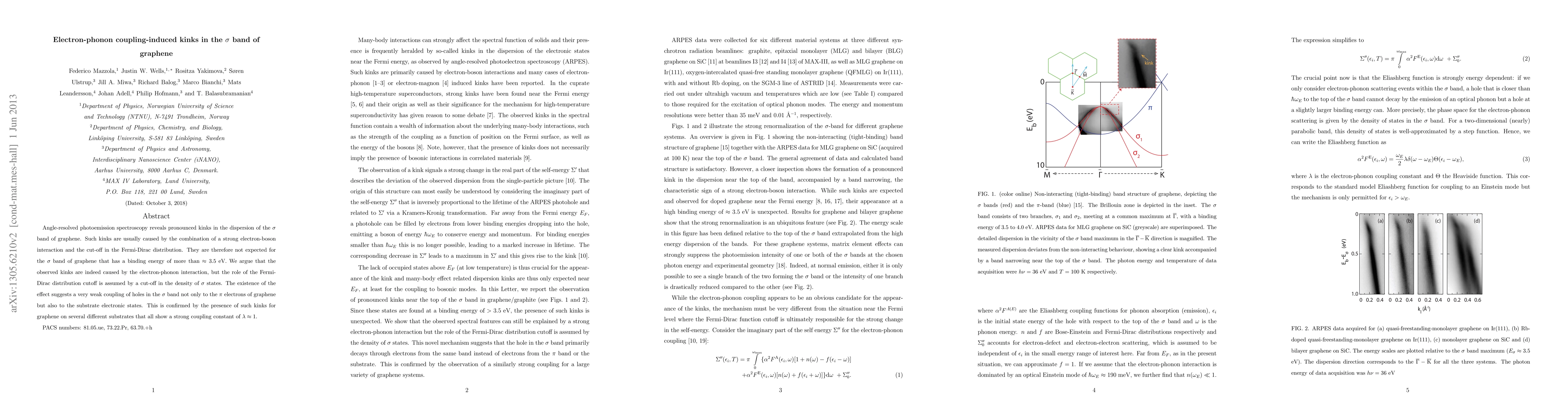 This study uses angle-resolved photoemission spectroscopy to identify kinks in the sigma band dispersion of graphene, typically unexpected due to high binding energy. The observed kinks are attributed to electron-phonon coupling, with the Fermi-Dirac distribution cutoff replaced by a density of sigma states cutoff, indicating weak hole coupling in the sigma band.