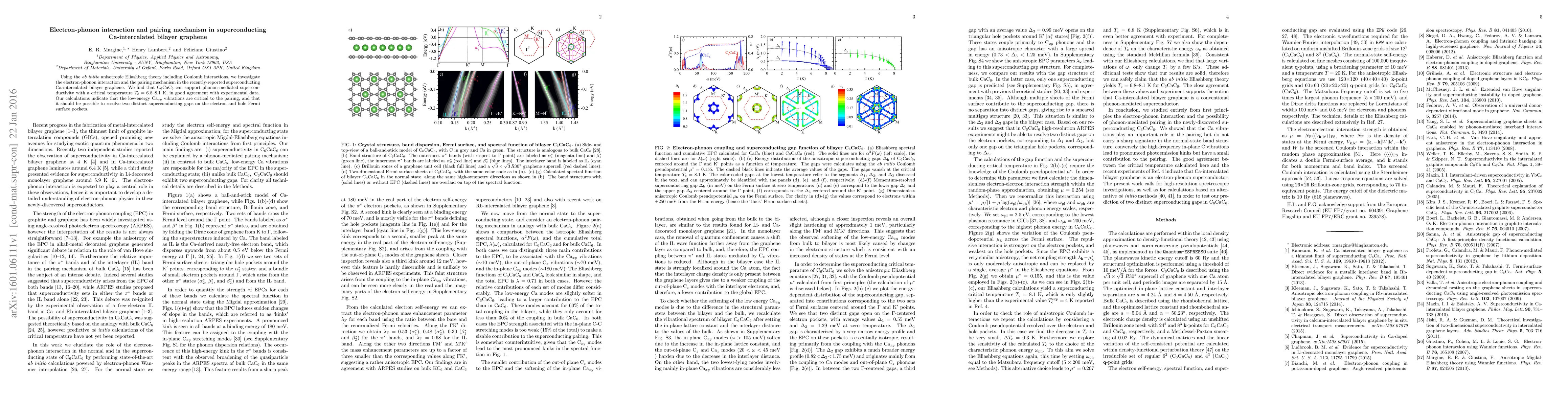 Using the {\it ab initio} anisotropic Eliashberg theory including Coulomb interactions, we investigate the electron-phonon interaction and the pairing mechanism in the recently-reported superconducting Ca-intercalated bilayer graphene. We find that C$_6$CaC$_6$ can support phonon-mediated superconductivity with a critical temperature $T_{\rm c}=$6.8-8.1~K, in good agreement with experimental data. Our calculations indicate that the low-energy Ca$_{xy}$ vibrations are critical to the pairing, and that it should be possible to resolve two distinct superconducting gaps on the electron and hole Fermi surface pockets.