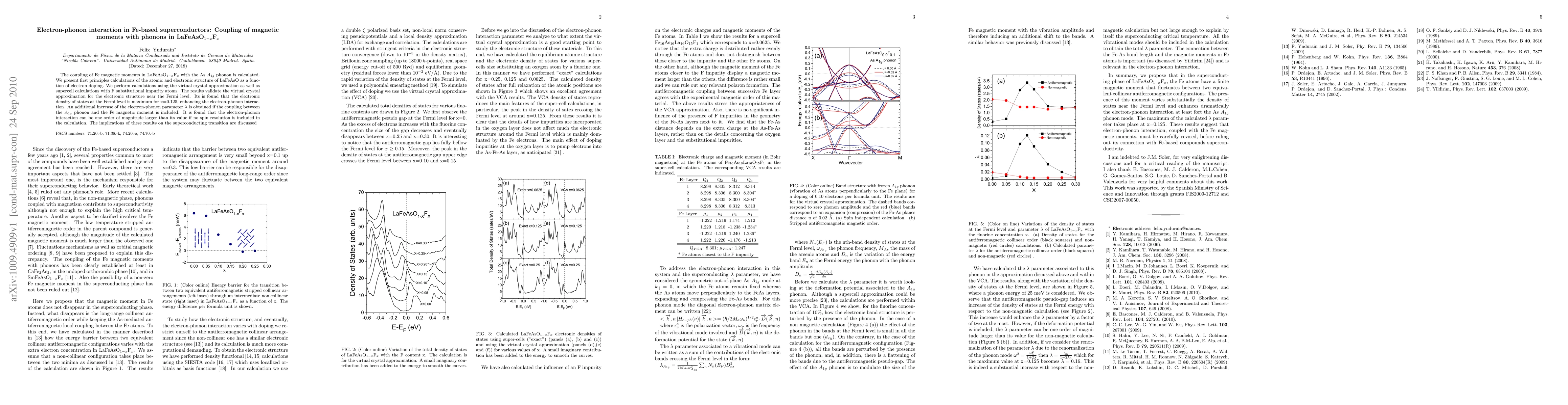 This paper investigates the electron-phonon interaction in LaFeAsO$_{1-x}$F$_{x}$ superconductors, finding that the coupling between Fe magnetic moments and the As $A_{1g}$ phonon significantly enhances the electron-phonon interaction, potentially up to an order of magnitude larger than without spin resolution, which has implications for the superconducting transition.