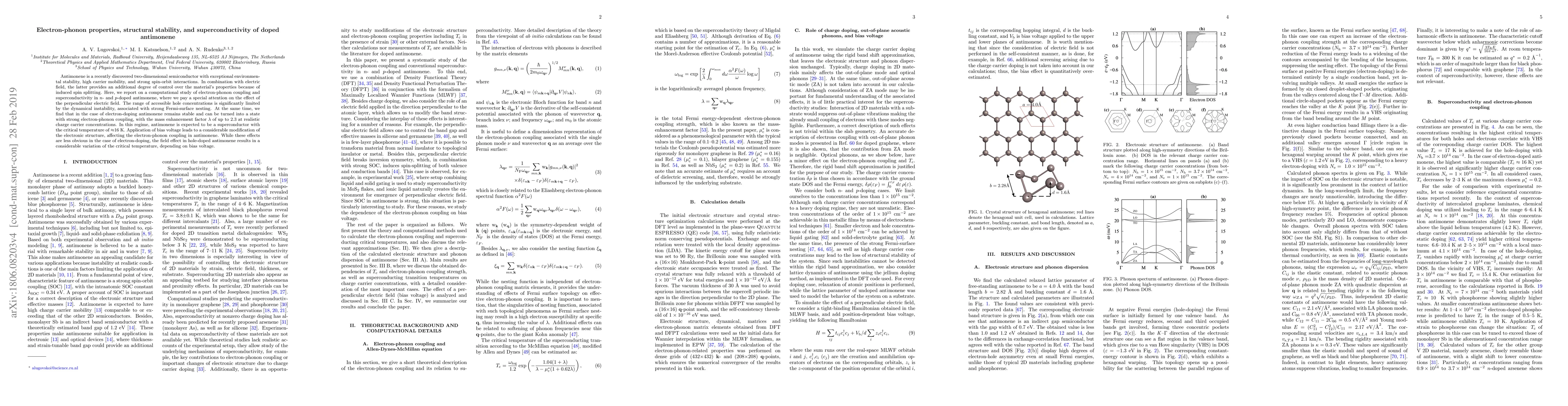 Antimonene is a recently discovered two-dimensional semiconductor with exceptional environmental stability, high carrier mobility, and strong spin-orbit interactions. In combination with electric field, the latter provides an additional degree of control over the materials' properties because of induced spin splitting. Here, we report on a computational study of electron-phonon coupling and superconductivity in $n$- and $p$-doped antimonene, where we pay a special attention on the effect of the perpendicular electric field. The range of accessible hole concentrations is significantly limited by the dynamical instability, associated with strong Fermi-surface nesting. At the same time, we find that in case of electron-doping antimonene remains stable and can be turned into a state with strong electron-phonon coupling, with the mass enhancement factor $\lambda$ of up to 2.3 at realistic charge carrier concentrations. In this regime, antimonene is expected to be a superconductor with the critical temperature of $\sim$16 K. Application of bias voltage leads to a considerable modification of the electronic structure, affecting the electron-phonon coupling in antimonene. While these effects are less obvious in case of electron-doping, field-effect in hole-doped antimonene results in a considerable variation of the critical temperature depending on bias voltage.