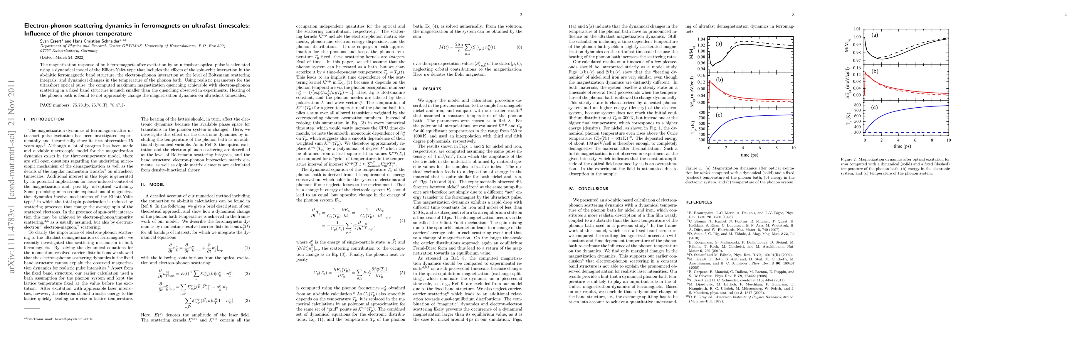 This paper investigates the magnetization response of ferromagnets following ultrashort optical pulse excitation, finding that electron-phonon scattering dynamics are insufficient to explain experimental magnetization quenching. The study reveals that phonon bath temperature changes do not significantly affect magnetization dynamics on ultrafast timescales.
