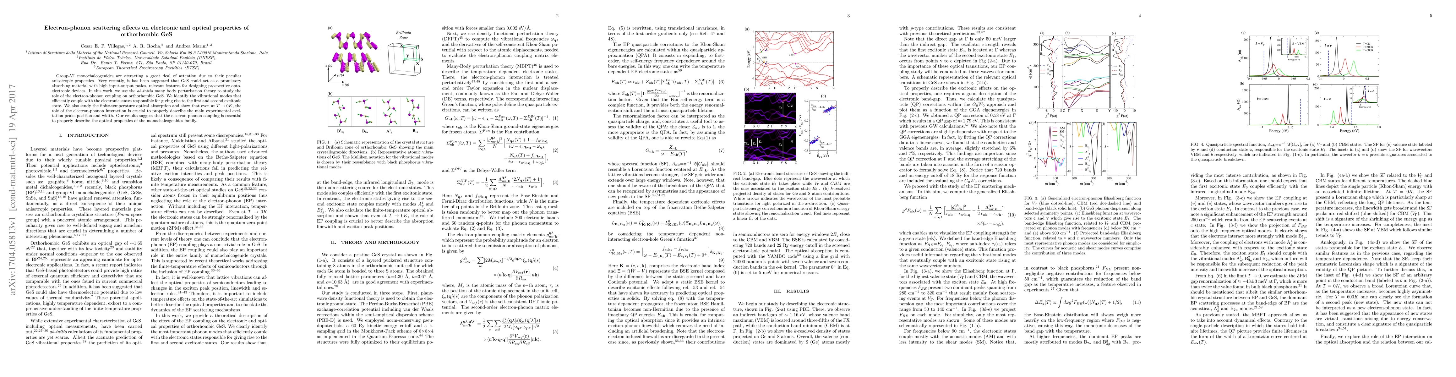 This paper investigates the influence of electron-phonon coupling on the electronic and optical properties of orthorhombic GeS using \emph{ab-initio} many-body perturbation theory. The study identifies phonon modes that interact with electronic states to form excitonic states and highlights the importance of electron-phonon coupling in accurately describing optical absorption peaks at low temperatures.