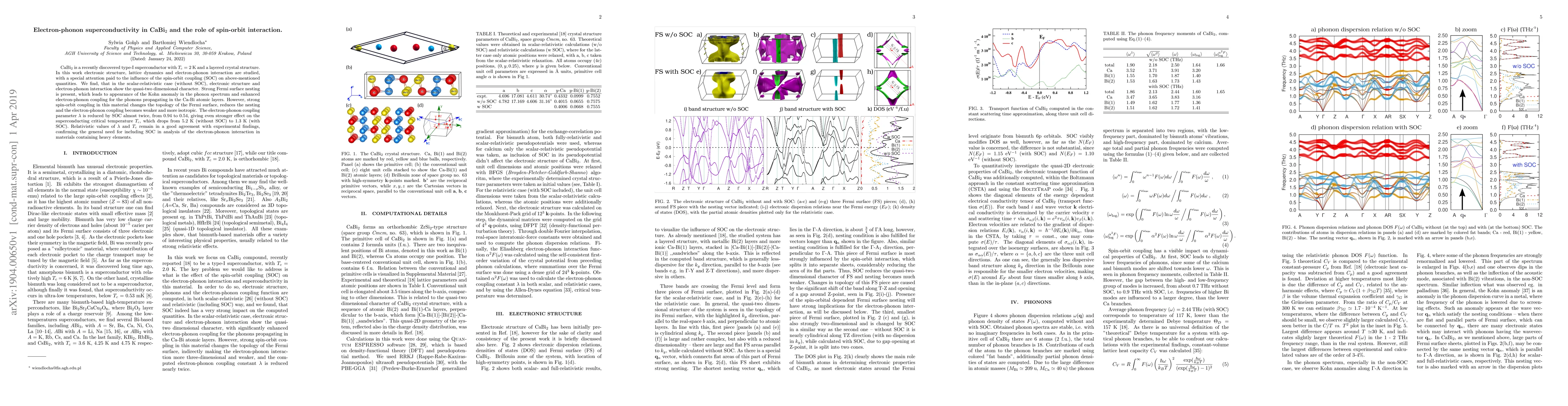 This paper investigates the electron-phonon superconductivity in CaBi$_2$, finding that strong spin-orbit coupling significantly reduces the electron-phonon coupling parameter and superconducting critical temperature, emphasizing the necessity of considering relativistic effects in heavy element superconductors.