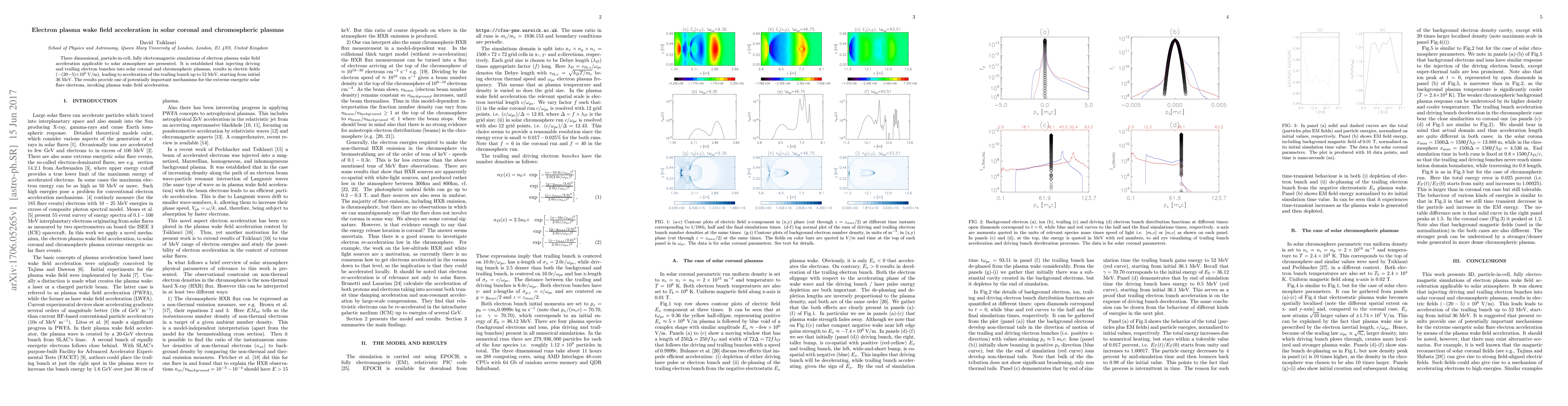 Three dimensional, particle-in-cell, fully electromagnetic simulations of electron plasma wake field acceleration applicable to solar atmosphere are presented. It is established that injecting driving and trailing electron bunches into solar coronal and chromospheric plasmas, results in electric fields ($-(20-5) \times 10^{6}$ V/m), leading to acceleration of the trailing bunch up to 52 MeV, starting from initial 36 MeV. The results provide one of potentially important mechanisms for the extreme energetic solar flare electrons, invoking plasma wake field acceleration.
