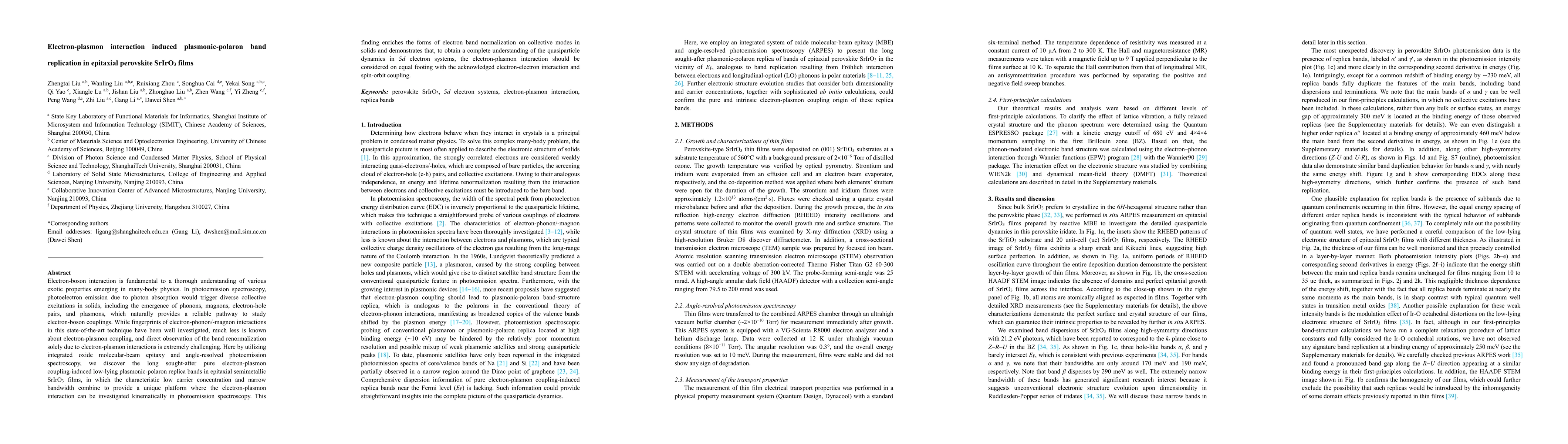 This research discovers electron-plasmon coupling-induced plasmonic-polaron bands in epitaxial SrIrO$_3$ films, using advanced photoemission spectroscopy techniques. The findings reveal a new form of electron band renormalization due to electron-plasmon interactions, highlighting the importance of considering this interaction alongside electron-electron and spin-orbit coupling for a complete understanding of quasiparticle dynamics in 5d electron systems.