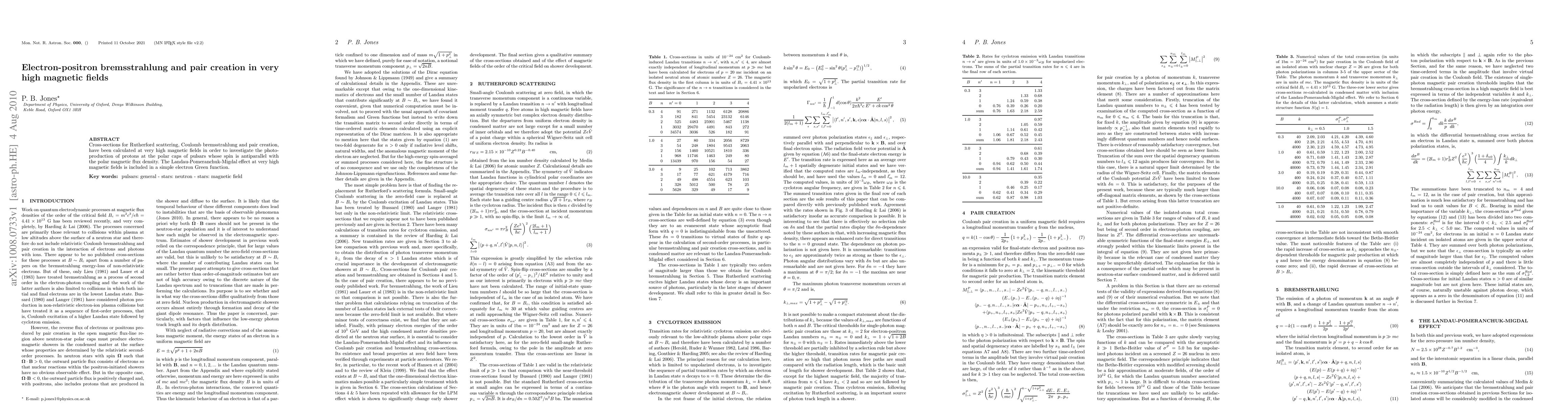 Researchers calculated cross-sections for electron-positron bremsstrahlung and pair creation in extremely high magnetic fields to study proton production at pulsars' polar caps. The findings include the Landau-Pomeranchuk-Migdal effect in a simple electron Green function.