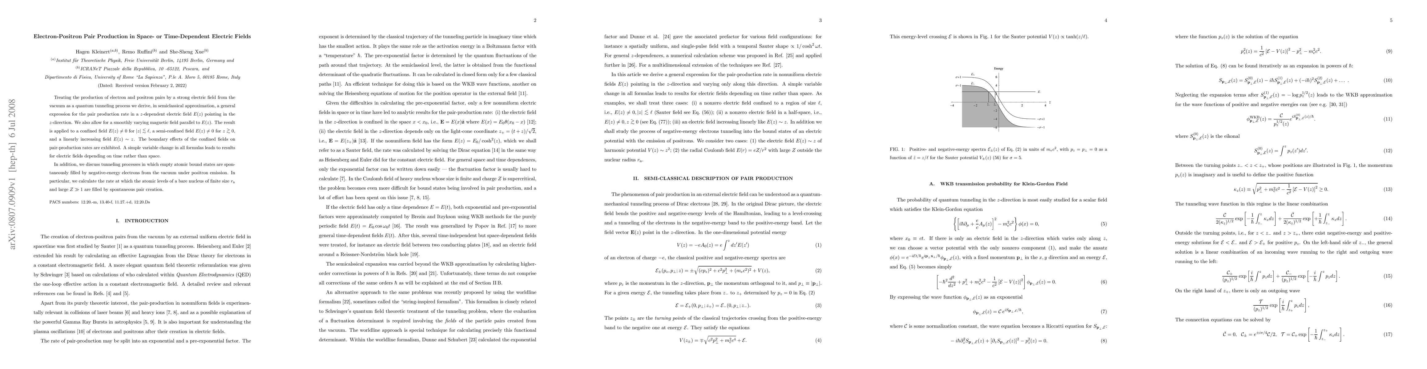This paper derives a semiclassical expression for electron-positron pair production rates in space- or time-dependent electric fields, applying it to various field configurations, and explores spontaneous filling of atomic bound states by vacuum electrons under positron emission.