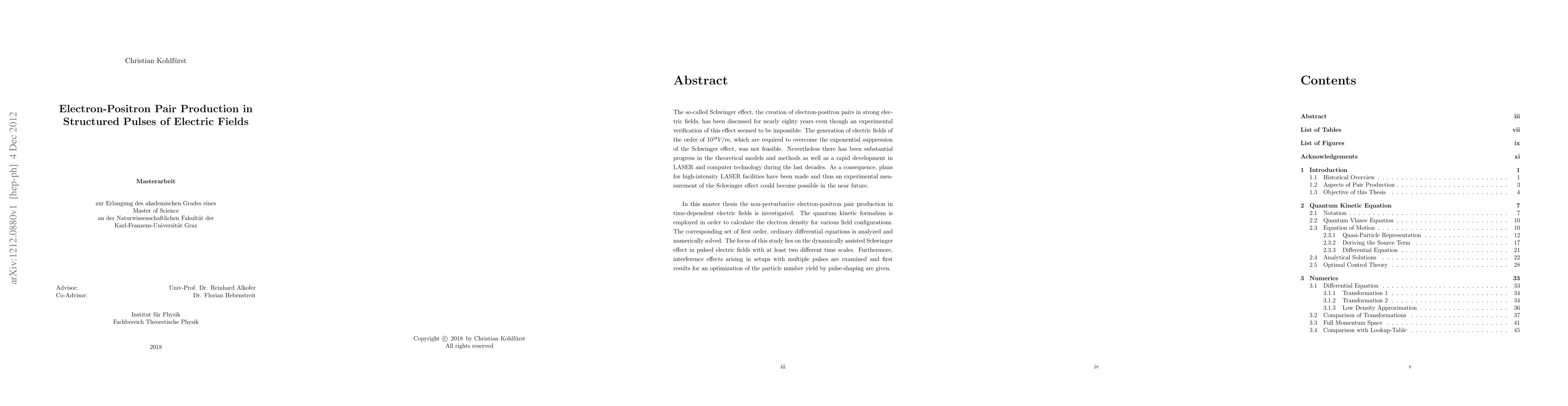 This study investigates non-perturbative electron-positron pair production in structured electric pulses using quantum kinetic formalism, focusing on the dynamically assisted Schwinger effect and interference effects in multi-pulse configurations, with initial results on optimizing particle yield through pulse-shaping.