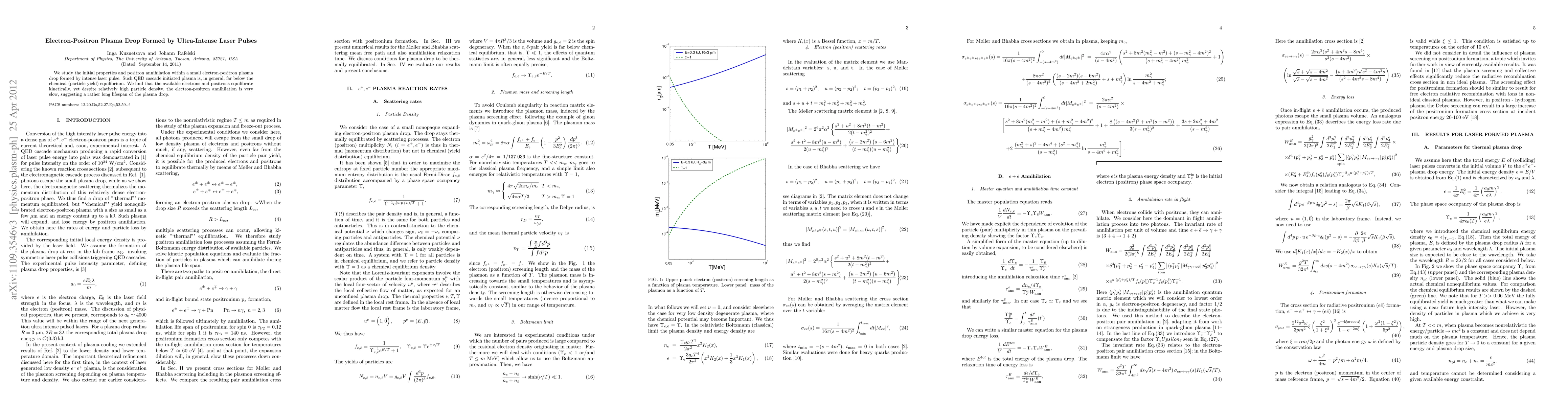 The study investigates the formation and properties of an electron-positron plasma drop created by ultra-intense laser pulses, focusing on its initial conditions and positron annihilation processes.