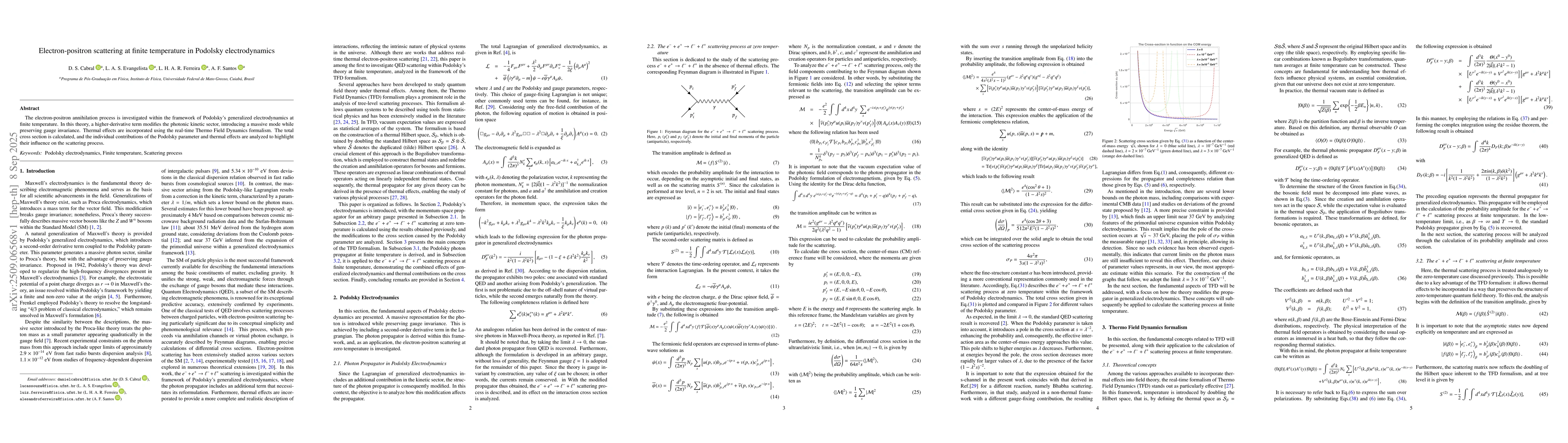 The electron-positron annihilation process is investigated within the framework of Podolsky's generalized electrodynamics at finite temperature. In this theory, a higher-derivative term modifies the photonic kinetic sector, introducing a massive mode while preserving gauge invariance. Thermal effects are incorporated using the real-time Thermo Field Dynamics formalism. The total cross section is calculated, and the individual contributions of the Podolsky parameter and thermal effects are analyzed to highlight their influence on the scattering process.