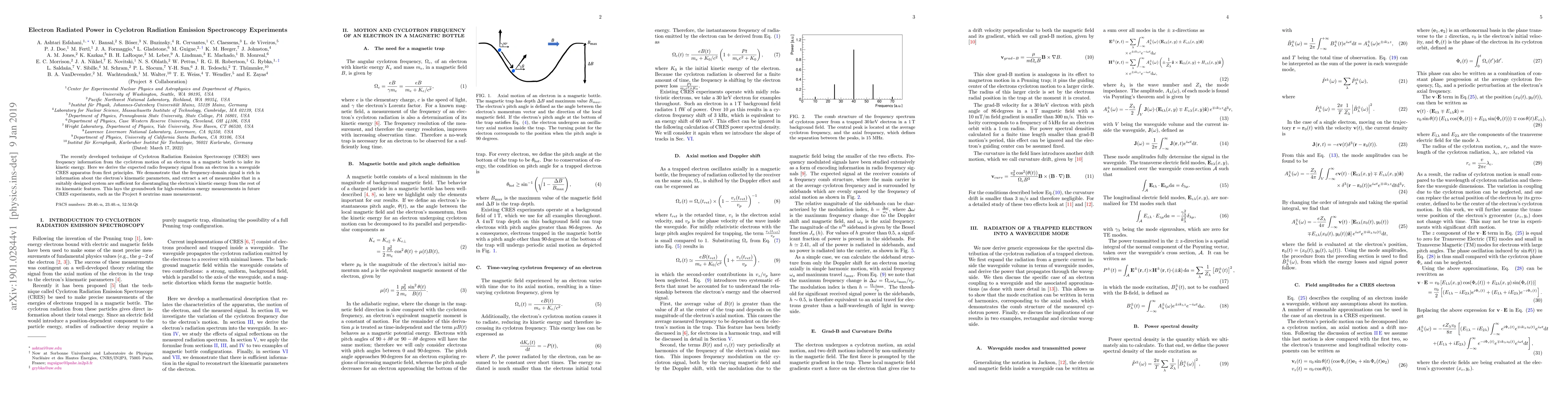 The recently developed technique of Cyclotron Radiation Emission Spectroscopy (CRES) uses frequency information from the cyclotron motion of an electron in a magnetic bottle to infer its kinetic energy. Here we derive the expected radio frequency signal from an electron in a waveguide CRES apparatus from first principles. We demonstrate that the frequency-domain signal is rich in information about the electron's kinematic parameters, and extract a set of measurables that in a suitably designed system are sufficient for disentangling the electron's kinetic energy from the rest of its kinematic features. This lays the groundwork for high-resolution energy measurements in future CRES experiments, such as the Project 8 neutrino mass measurement.