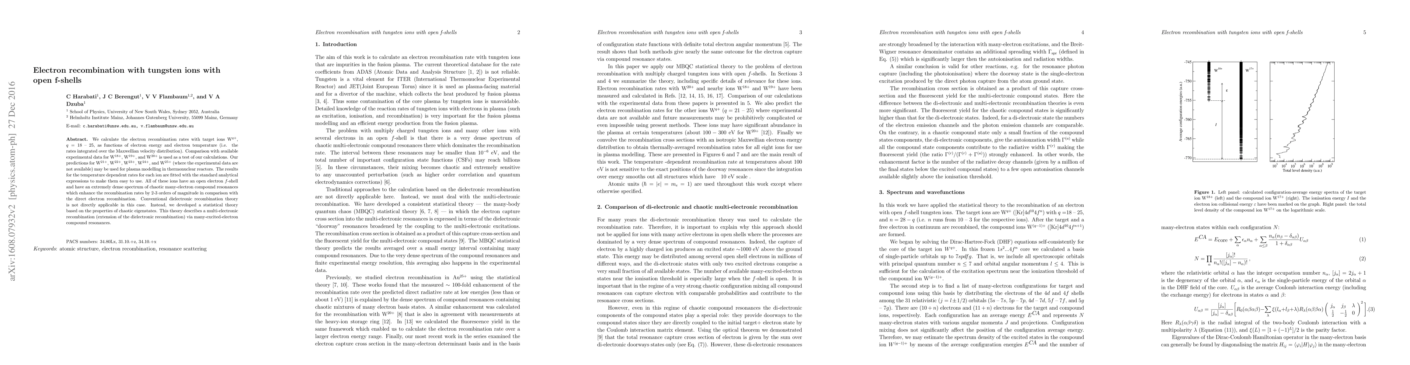This paper calculates electron recombination rates for tungsten ions with open f-shells, ranging from W$^{18+}$ to W$^{25+}$, and compares theoretical results with experimental data for lower charges. The study introduces a new statistical theory to account for the enhanced recombination rates due to chaotic many-electron resonances, providing predictions for ions lacking experimental data for plasma modeling applications.