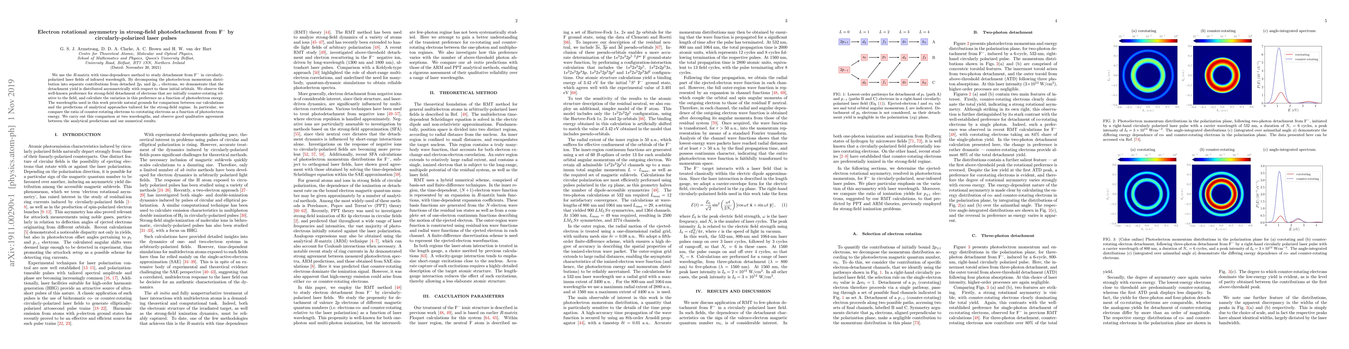 This study investigates electron detachment from F$^-$ under circularly polarized infrared laser fields using the $R$-matrix with time-dependence method. The research reveals an electron rotational asymmetry in the photoelectron momentum distribution, showing a preference for counter-rotating electrons in strong-field conditions, and provides a comparison with analytical predictions, showing good qualitative agreement.