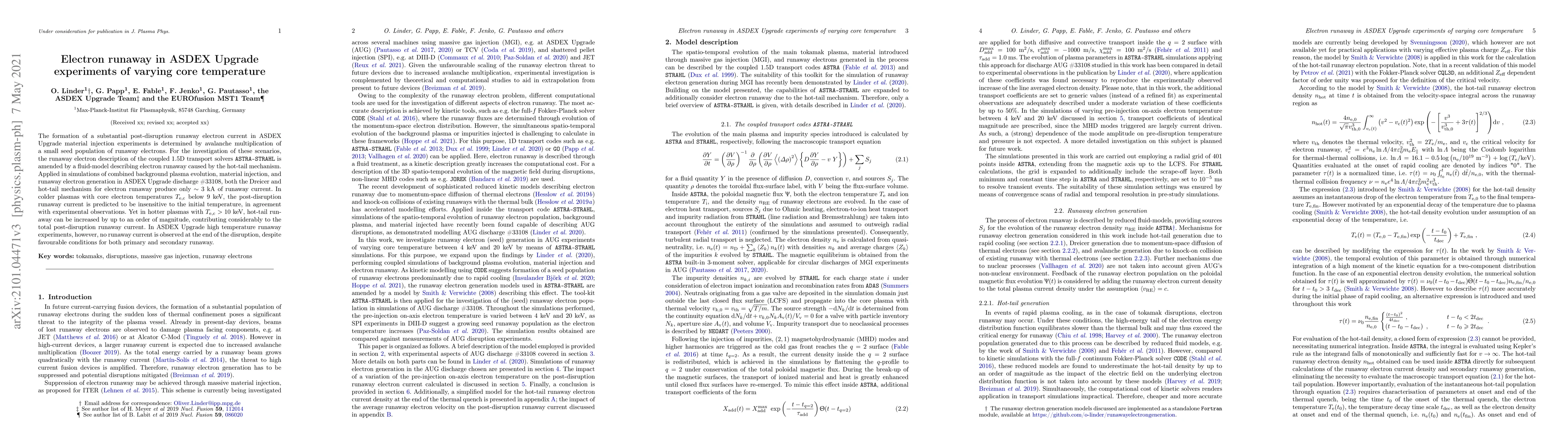 This paper explores the formation of runaway electron currents in ASDEX Upgrade experiments, showing that while both Dreicer and hot-tail mechanisms can generate runaway electrons, the latter significantly increases current in hotter plasmas. Despite favorable conditions, no runaway current is observed in high-temperature experiments.