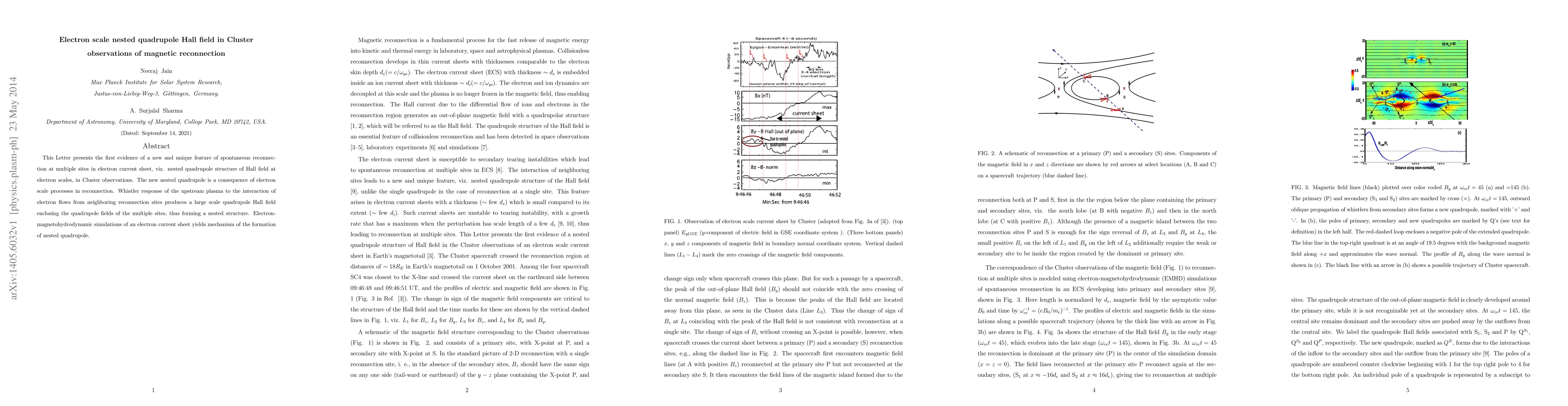 The paper introduces a novel observation of nested quadrupole Hall fields at electron scales in magnetic reconnection, explained through EMHD simulations, which contributes to the theoretical framework of reconnection processes.