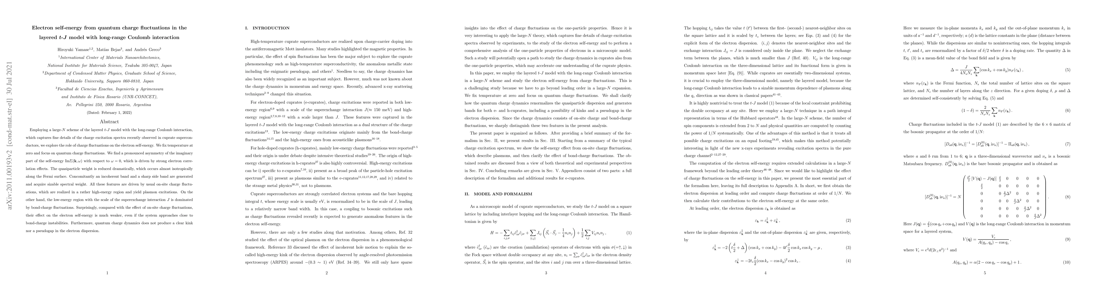Employing a large-N scheme of the layered t-J model with the long-range Coulomb interaction, which captures fine details of the charge excitation spectra recently observed in cuprate superconductors, we explore the role of the charge fluctuations on the electron self-energy. We fix temperature at zero and focus on quantum charge fluctuations. We find a pronounced asymmetry of the imaginary part of the self-energy Im$\Sigma({\bf k}, \omega)$ with respect to $\omega = 0$, which is driven by strong electron correlation effects. The quasiparticle weight is reduced dramatically, which occurs almost isotropically along the Fermi surface. Concomitantly an incoherent band and a sharp side band are newly generated and acquire sizable spectral weight. All these features are driven by usual on-site charge fluctuations, which are realized in a rather high-energy region and yield plasmon excitations. On the other hand, the low-energy region with the scale of the superexchange interaction J is dominated by bond-charge fluctuations. Surprisingly, compared with the effect of the on-site charge fluctuations, their effect on the electron self-energy is much weaker even if the system approaches close to bond-charge instabilities. Furthermore, quantum charge dynamics does not produce a clear kink nor a pseudogap in the electron dispersion.