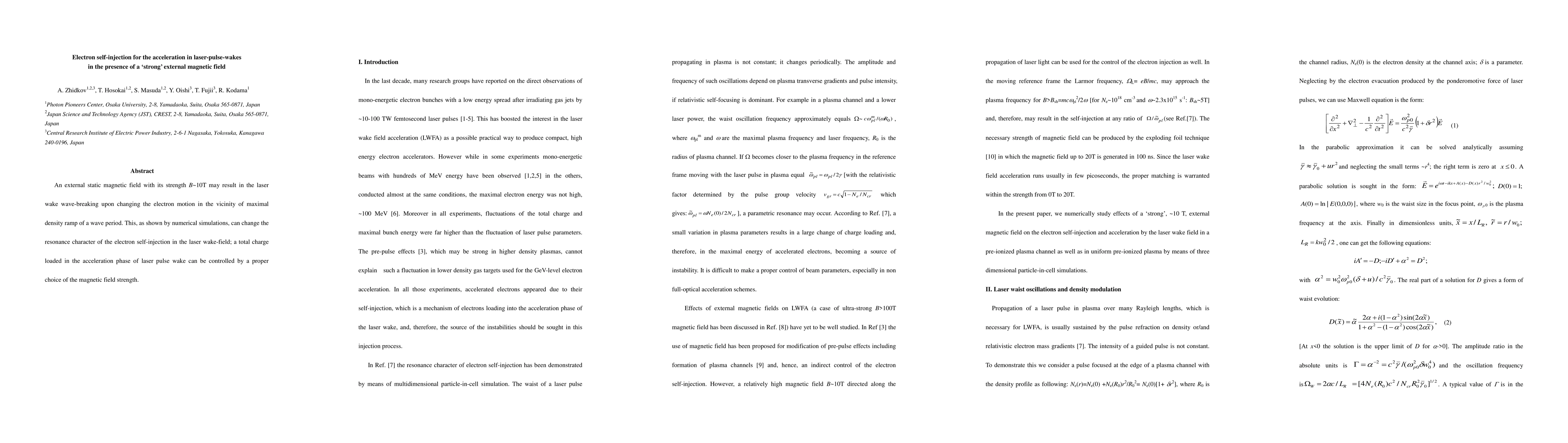 The study uses numerical simulations to demonstrate how varying the magnetic field strength can change the resonance character of electron self-injection, enabling more efficient and controlled high-energy particle acceleration.