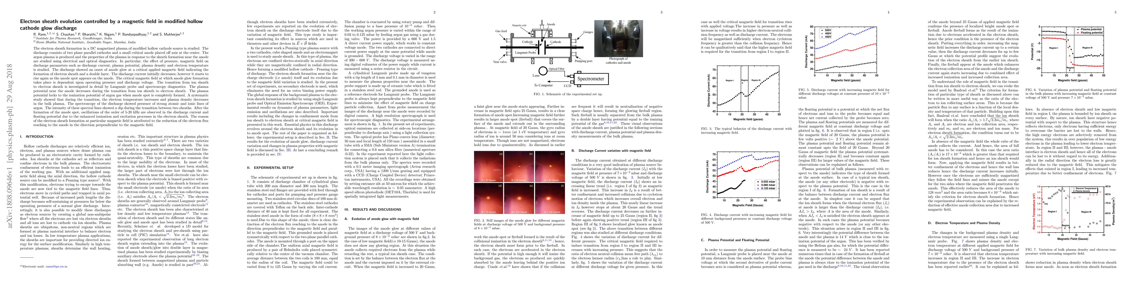 This study investigates the evolution of electron sheaths in a modified hollow cathode glow discharge under the influence of a magnetic field. The transition from ion to electron sheaths, characterized by changes in plasma potential, density, and electron temperature, is observed using diagnostics, revealing oscillations in discharge current post-transition.