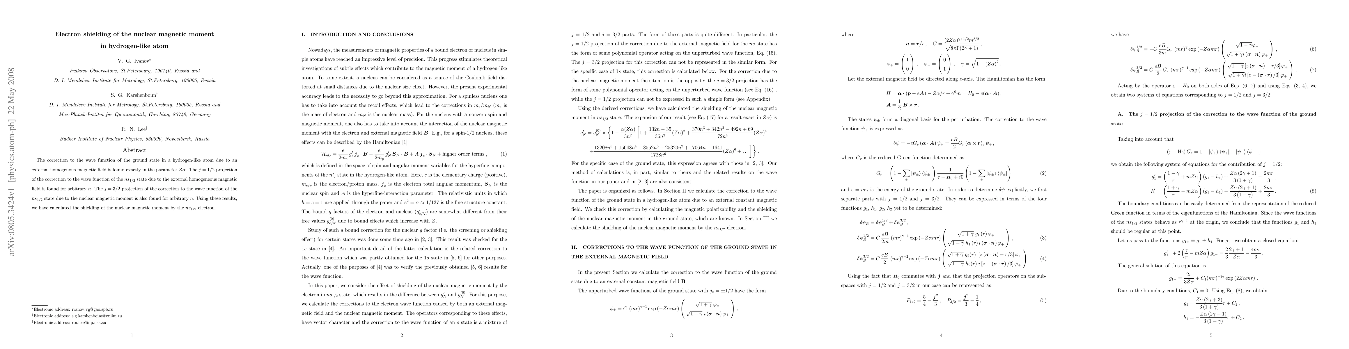 This paper precisely determines the corrections to the ground state wave function in hydrogen-like atoms under an external magnetic field, and calculates the shielding of the nuclear magnetic moment by the $ns_{1/2}$ electron, considering both $j=1/2$ and $j=3/2$ projections for arbitrary $n$.