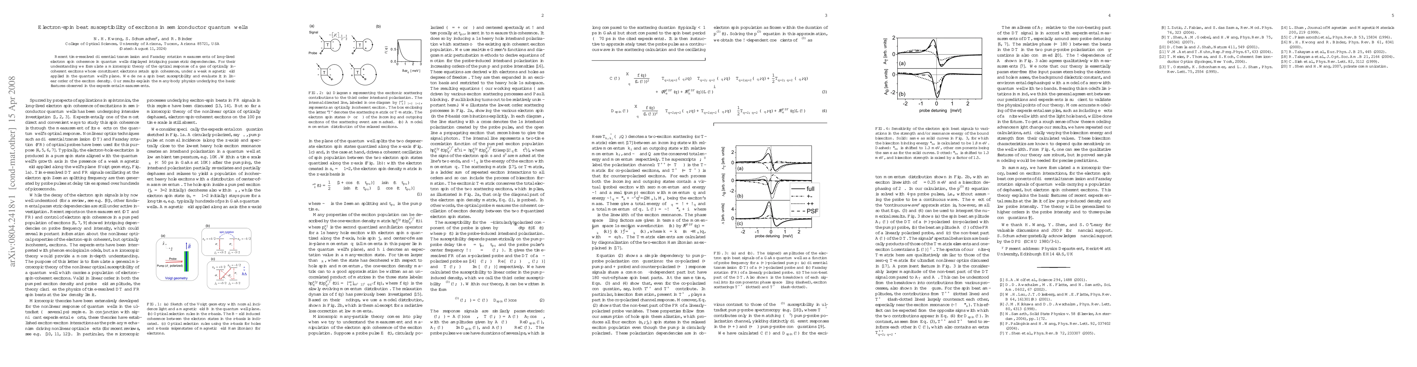 This paper develops a microscopic theory to explain the electron-spin beat susceptibility of excitons in semiconductor quantum wells under a weak magnetic field. The study evaluates this susceptibility in linear order of exciton density, providing insights into the many-body physics behind the observed experimental phenomena.